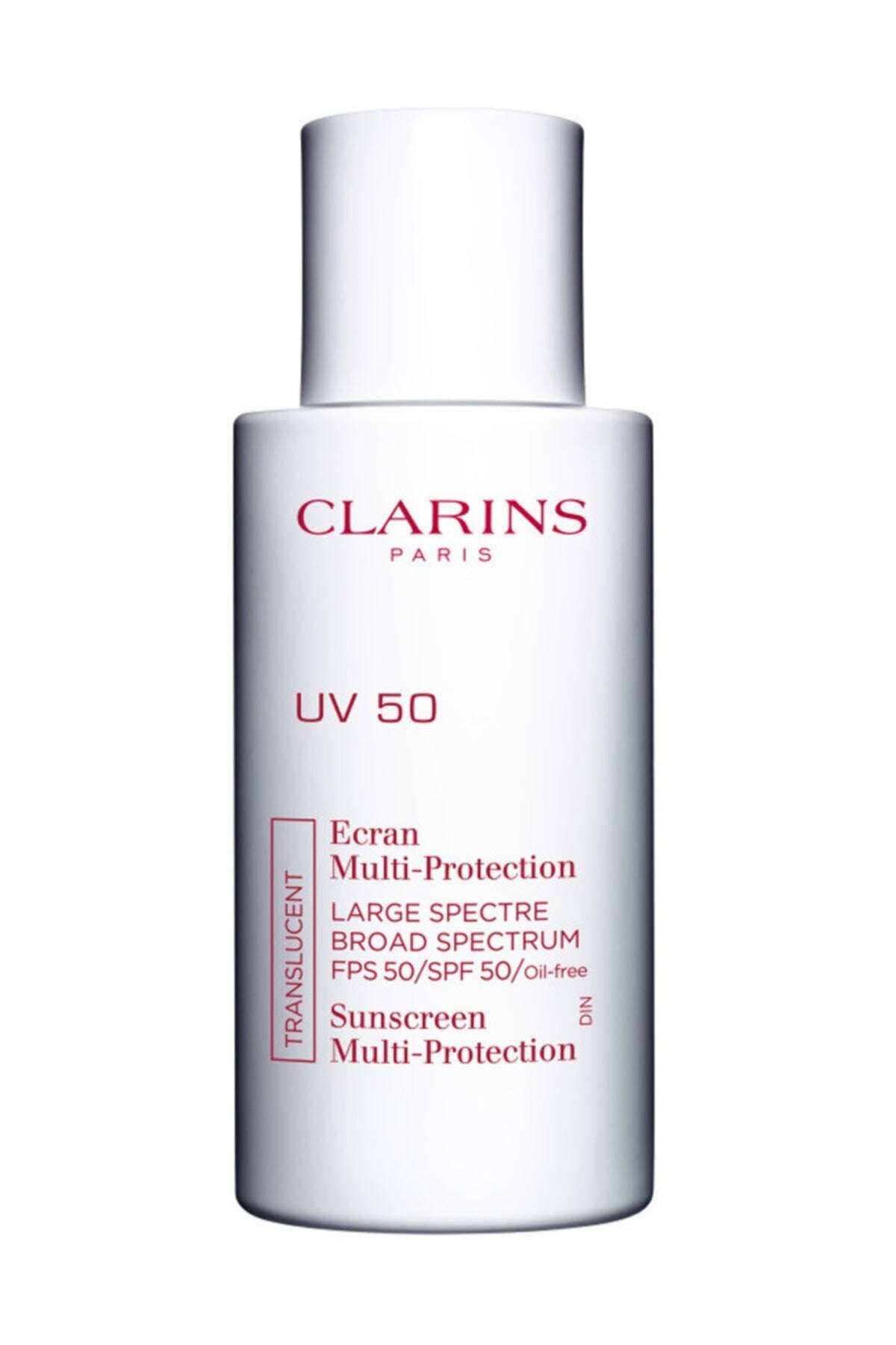 Clarins UV Plus Day Screen Translucent 30 ml SPF 50 Multi-Protection Sunscreen CreamGet a full day of sun protection with Clarins UV Plus Day Screen Multi-Protection SPF50, a lightweight oil-free sunscreen. Ideal for urban living, this silky ultra-fine liquid provides protection from the harmful effects of UV rays, free radicals and pollution. It sits invisibly over day cream or under your make-up and provides a broad-spectrum veil that protects the skin. Its innovative formula helps protect the skin against premature aging. Enriched with powerful antioxidant plant extracts such as organic Alpine sanicle and cantaloupe, which cleanse and leave skin looking smooth and youthful Clarins UV Plus offers the perfect urban defense for your skin against pollution and UV rays Contains a stronger level of UV protection SPF50 PA and Clarinse exclusive Anti-Pollution Complex to help prevent skin aging and darkening Provides up to 10 hours of resistance to sweat heat and humidity Your skin looks younger and brighter every dayClarins How to Use UV PLUS AntiPollution Sunscreen MultiProtection Broad Spectrum SPF 50 Shake well before applying over your daily moisturizer Warm a small amount between your palms Apply with gentle pressing movements from the center of the face outwards Apply after your skincare routine but before makeup