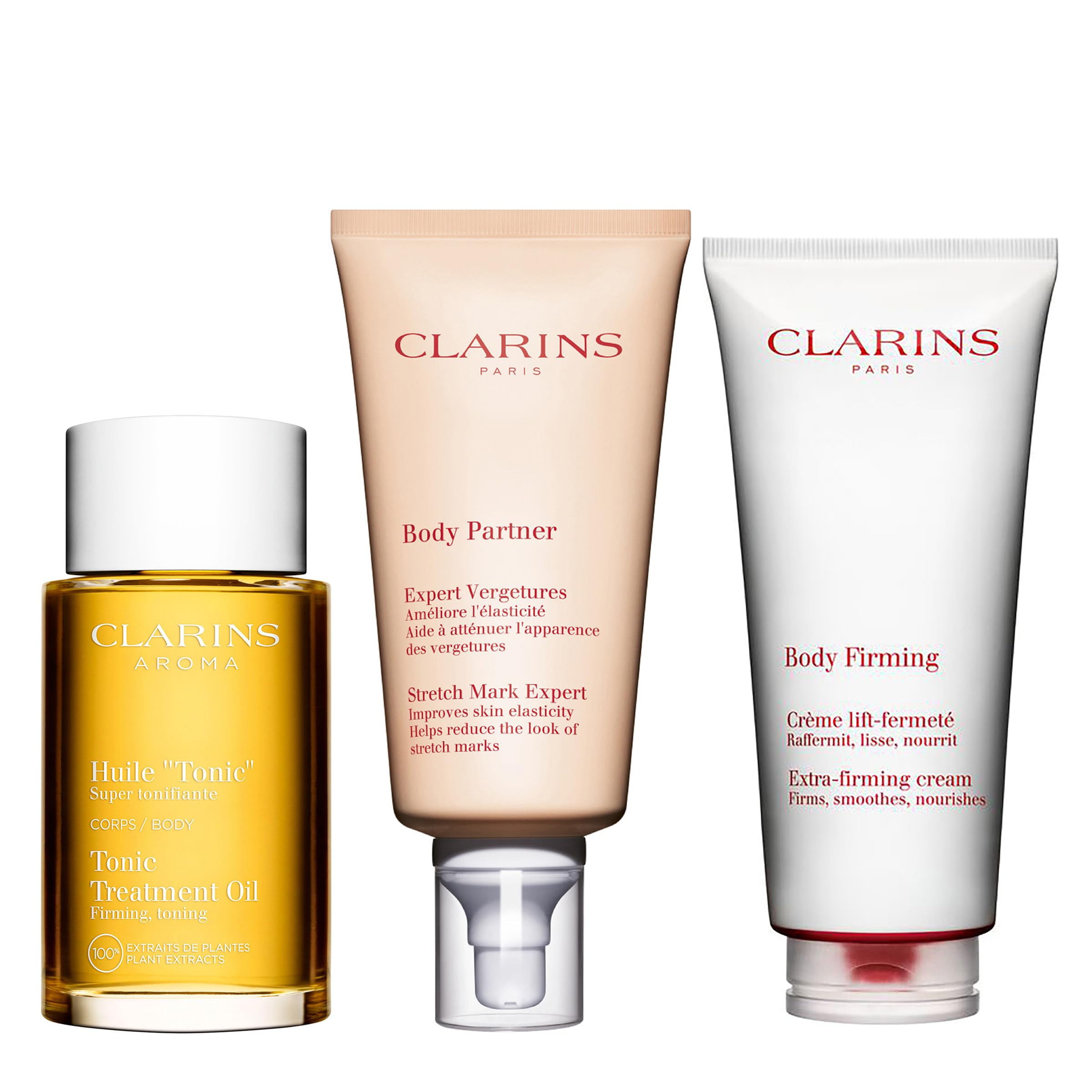 Clarins Tonic Body Treatment Oil Body Partner Stretch Mark Expert and Extra-Firming Body Cream Bundle | Stretch Mark Oil | Stretch Mark Cream for Pregnancy | Anti Aging Body Lotion