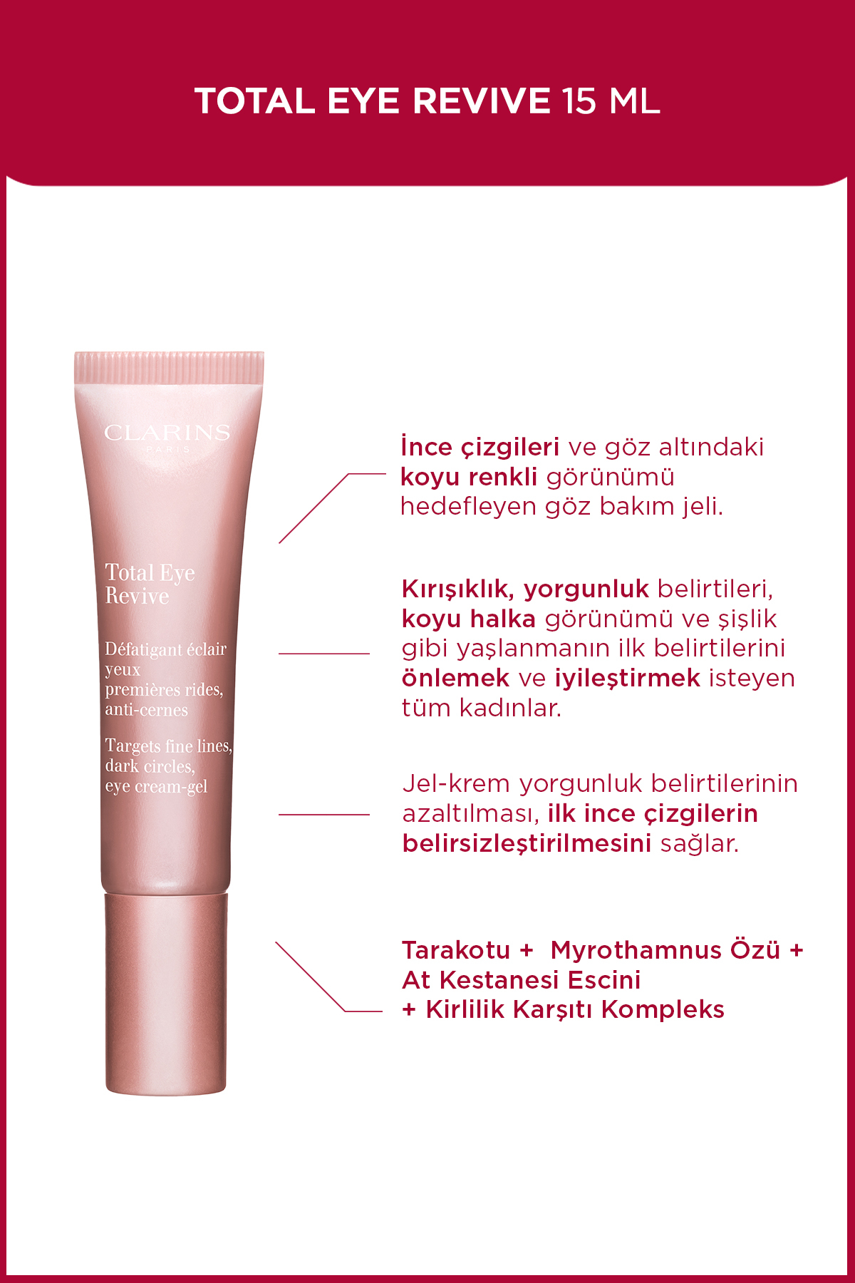 Clarins Total Eye Revive 15 Ml - Eye Care Gel Targeting Lines and Circles