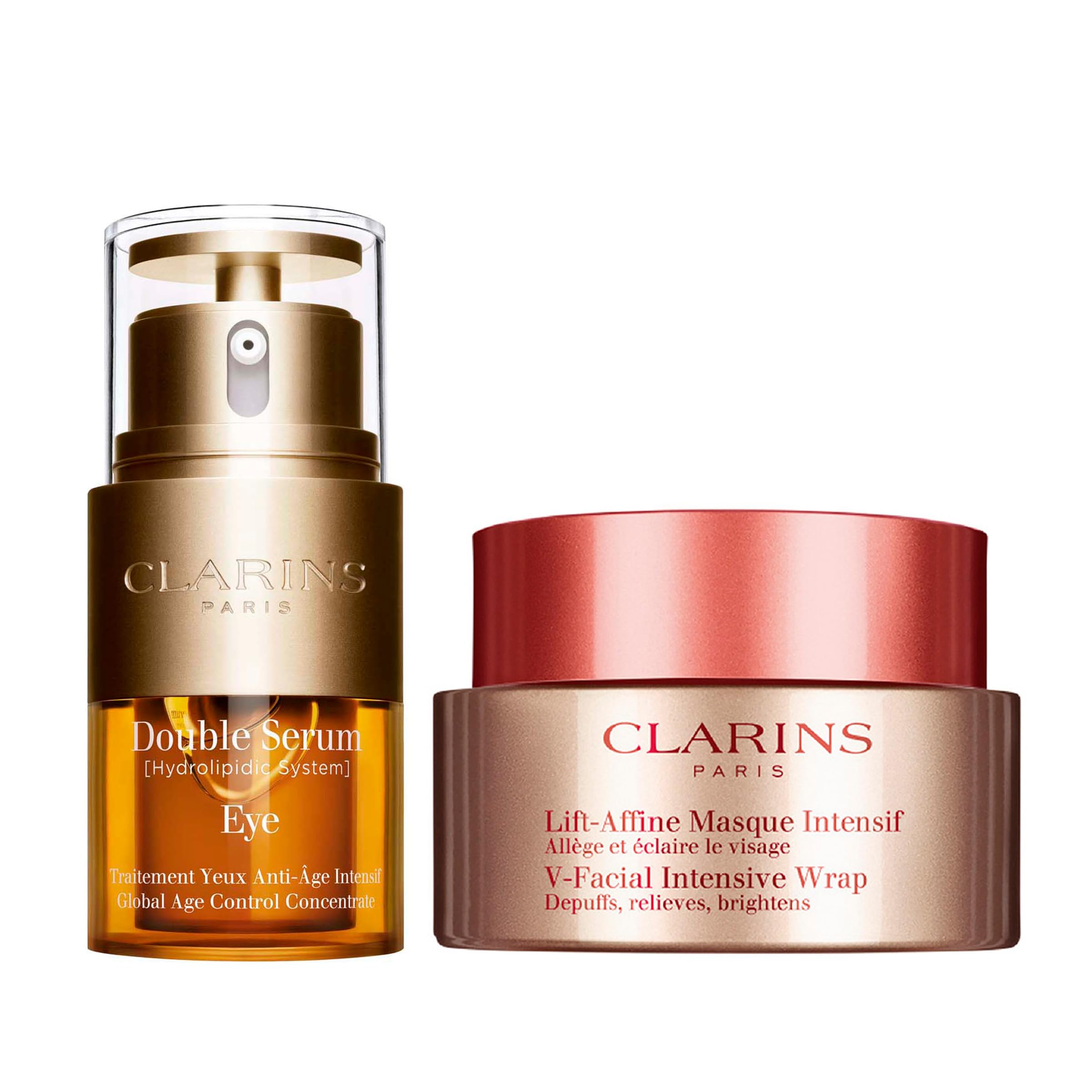 Clarins V-Facial Wrap Face Mask and Double Serum Eye Bundle | Depuffing Face Mask | Anti Aging Eye Cream | Visibly Smooths Firms Hydrates and Revitalizes for More Youthful-Looking Eyes in 7 Days*