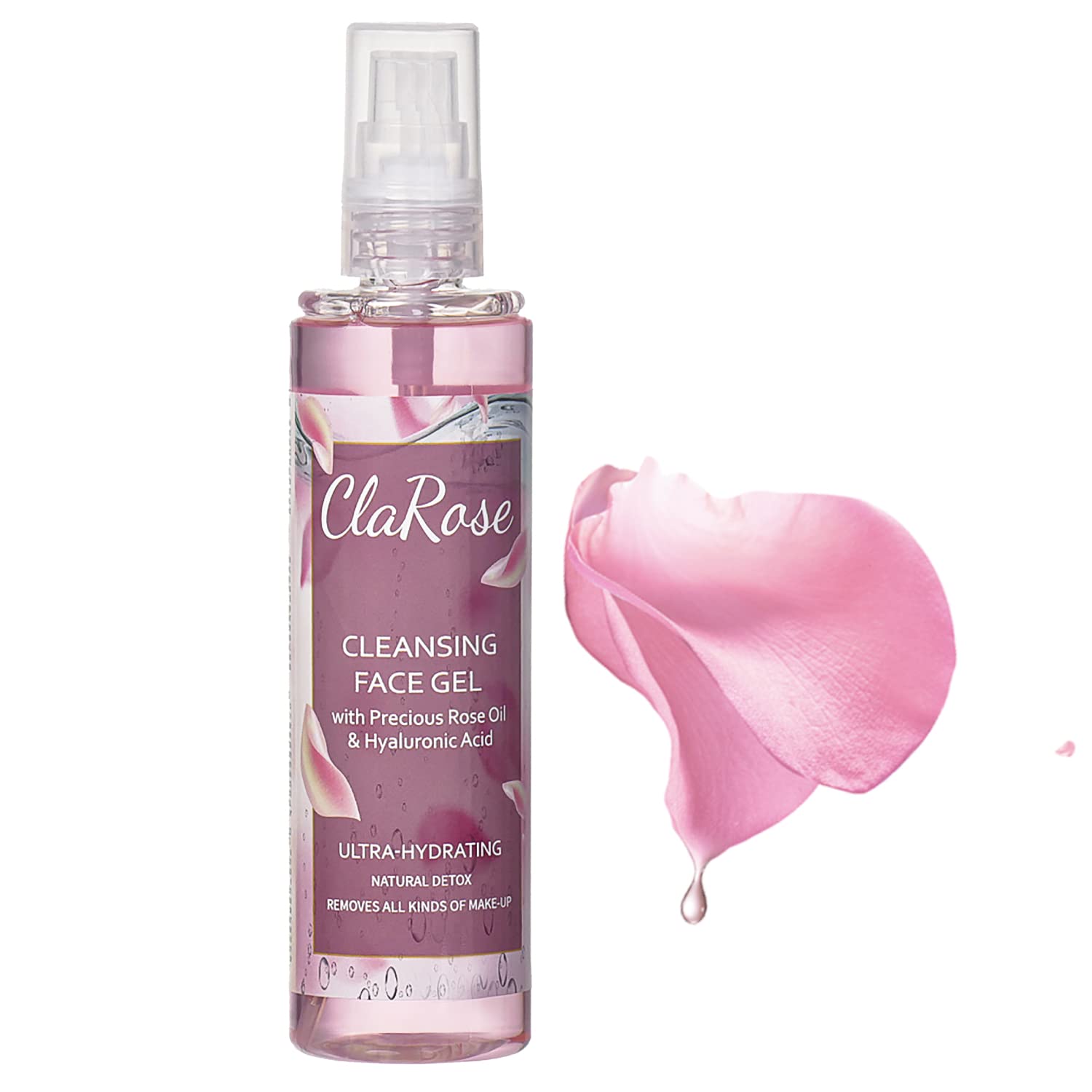 ClaRose Gel purifiant pour le visage, certifié vegan et enrichi en huile naturelle de rose et acide hyaluronique, 150 ml