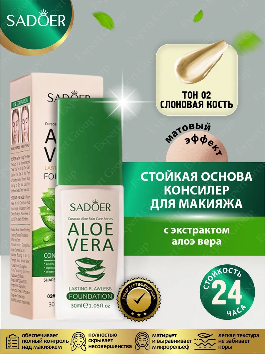 | Комплектация | Стойкая основа консилер для макияжа Sadoer с экстрактом алоэ вера тон 02 Слоновая кость 30 мл. |