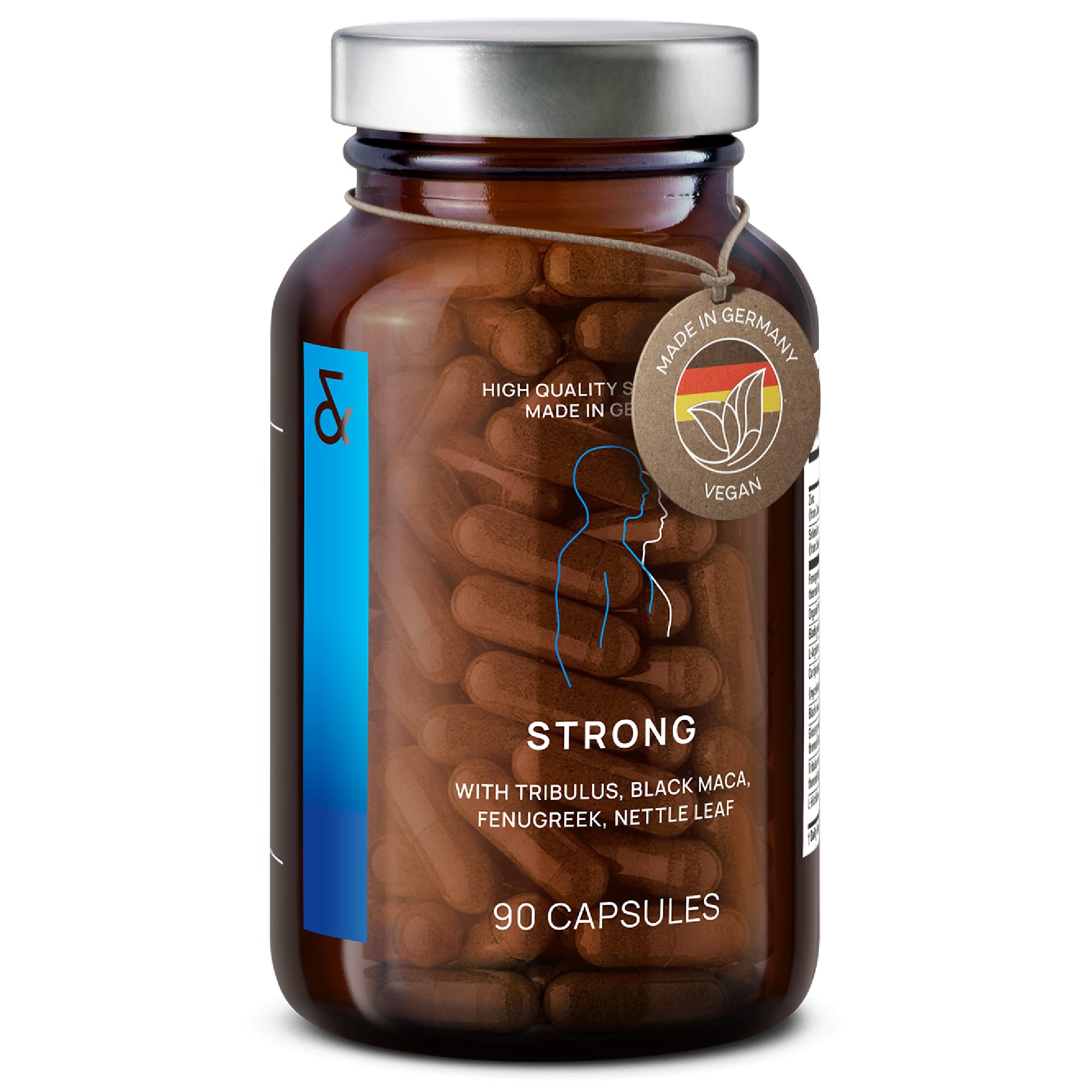 "Masterful blend of Black Maca, Tribulus, Fenugreek, Cordyceps Sinensis, among others. Rich in Zinc and Selenium, essential for vitality and well-being. Contains key amino acids, L-Arginine and L-Histidine for maintaining an active lifestyle. Comes in a pack of 90 capsules for a month's supply. 100 Vegan formulation, free from GMOs and unwanted additives. Eco-friendly packaging: Fully recyclable glass bottle. Exclusively made in Germany for man. About CLAV No 32 STRONG: For the modern man who is in tune with his health, seeking to maintain his strength and vitality. Dive into a blend enriched with Black Maca, Black Garlic, Cordyceps Sinensis, and more, all coming together to form the perfect vitality complex for men. CLAV No 32 STRONG is not just a supplement it's a commitment to yourself, ensuring you remain at the top of your game, every single day. "Sustainability Matters - Produced with utmost care in Germany. Vegan, gluten-free, lactose-free. Housed in a recyclable brown glass bottle, emphasizing our commitment to the environment. Amino Acid Boost - Infused with L-Arginine L-Histidine, supporting metabolic processes and enhancing the body's overall function, keeping you active and on the go. Herbal Powerhouse - With CLAV No 32 STRONG, experience the synergistic benefits of Fenugreek Seed Extract, Ginseng Extract, and other herbs that have been traditionally recognized for their health-promoting properties. Optimal Zinc Selenium - Specifically formulated to support men's health, aiding in maintaining normal testo levels and promoting overall vitality for the active man. Adaptogen Blend - Premium selection of Black Maca Root, Cordyceps, Tribulus Terrestris, Black Garlic, Ginseng, and Nettle Powder tailored for men seeking enhanced vitality and overall wellness.