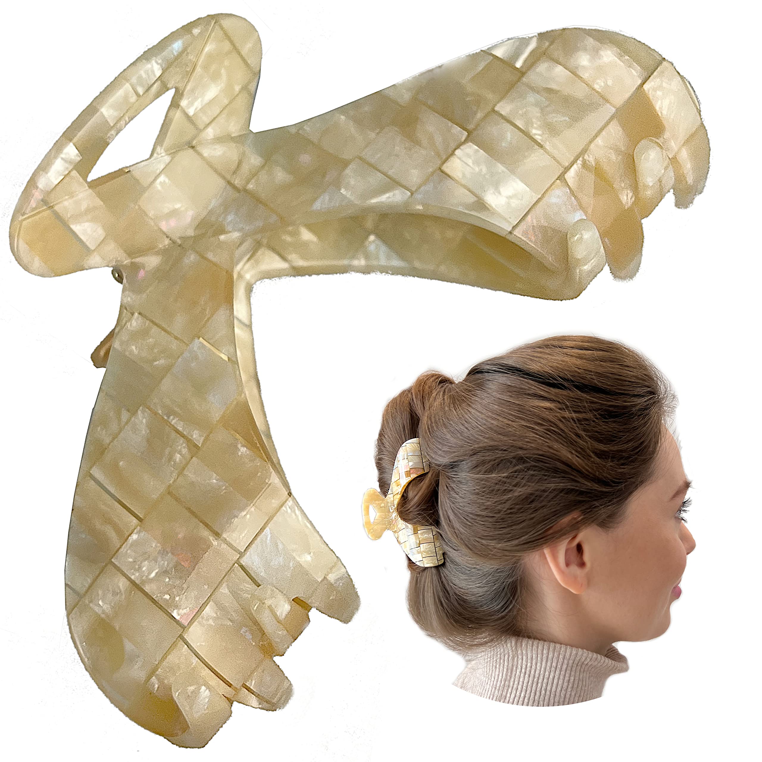 Hair clip vintage mother of pearl checks - luxury accessory made of cellulose with double bayonet