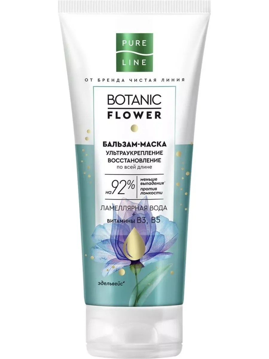 Pure Line Ultra-Strengthening Hair Balm-Mask, 200 ml. Experts at Chistaya Liniya developed the Pure Line Ultra-Strengthening line specifically for strong and well-groomed hair. Add the Ultra-Strengthening Hair Balm-Mask to your daily hair care routine, and you'll feel your hair transform. The formula is enhanced with vitamins B3 and B5 to restore and protect against breakage along the entire length. Lamellar water adds shine and elasticity without weighing hair down. This innovative formula is expert-approved. The product can be used as both a balm and a mask. It doesn't weigh hair down and is suitable for daily use.