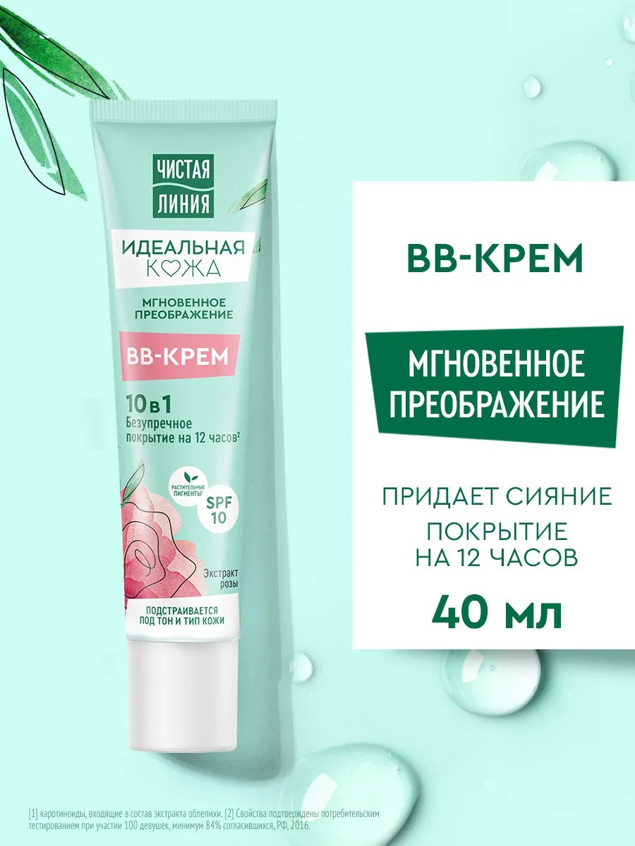 ЧИСТАЯ ЛИНИЯ Крем для лица BB идеальная кожа 10в1 с экстрактом розы 40 мл