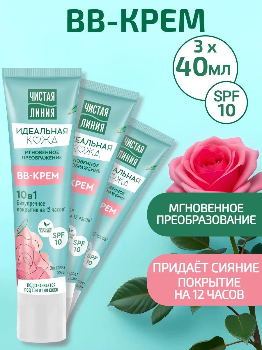 Чистая линия Крем для лица BB с экстрактом розы 3 шт