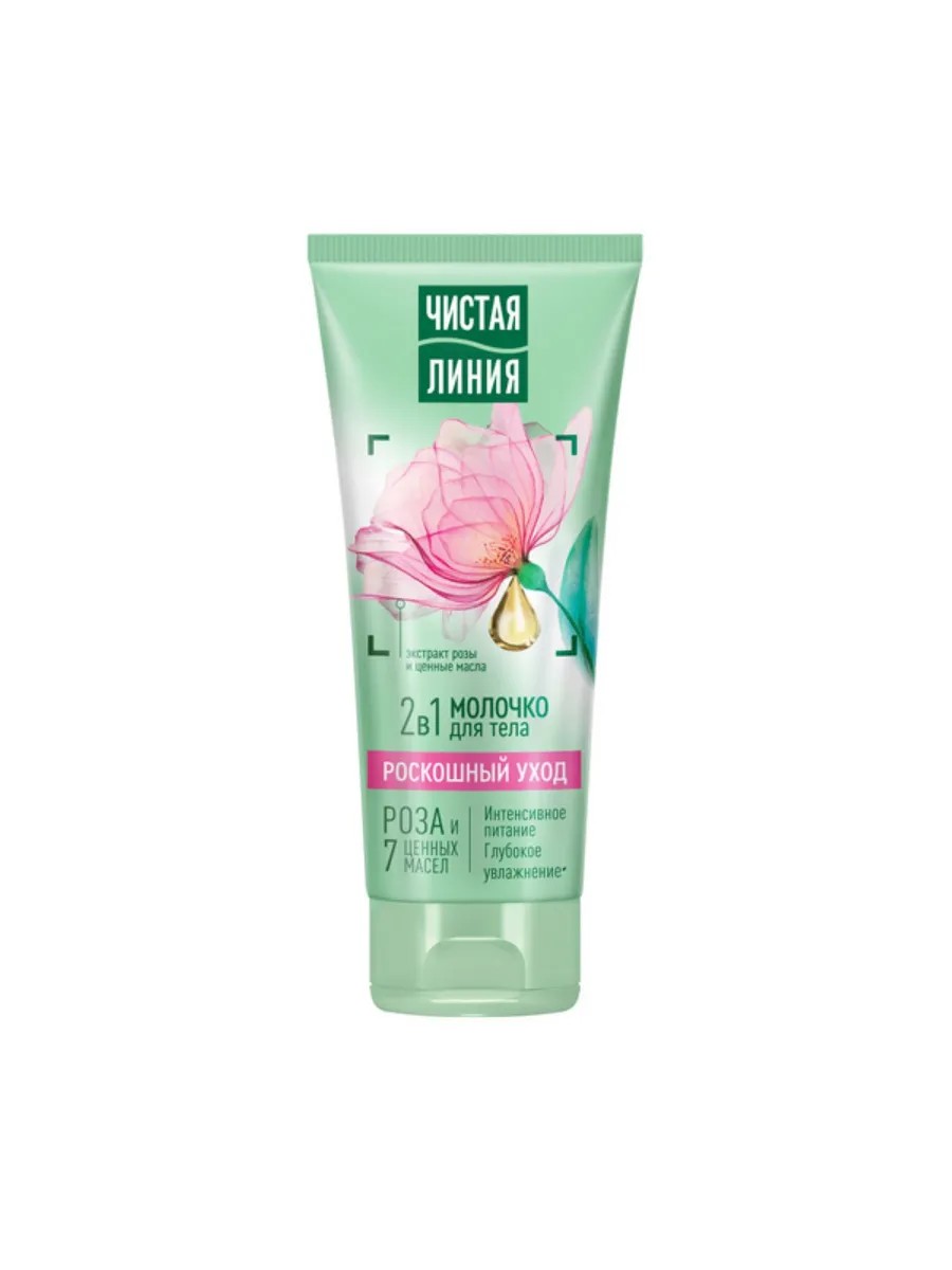Чистая Линия Молочко для тела Интенсивное питание Роскошный уход, 200 мл, 1 шт. Молочко для тела Интенсивное питание обеспечивает роскошный уход 2 в 1. Роза дарит коже красоту и сияние, а ценные масла, входящие в состав средства, глубоко питают и интенсивно увлажняют, устраняя ощущение сухости и стянутости кожи. В результате кожа становится гладкой и бархатистой.