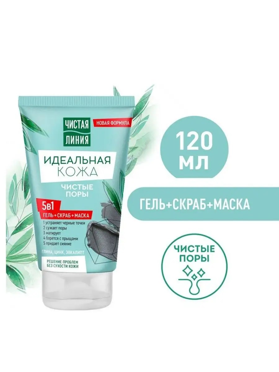 Чистая линия Косметическое средство 5в1 (гель+скраб+маска), 120 мл