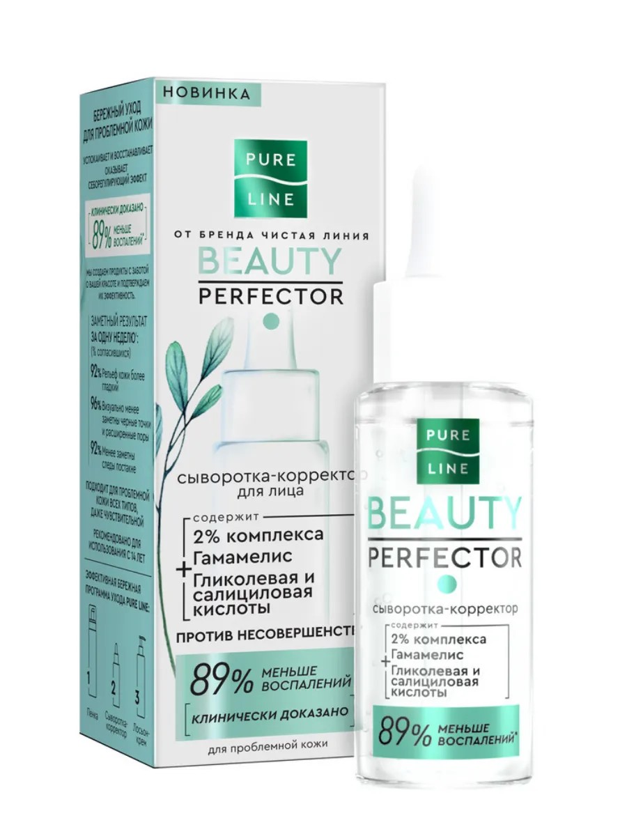 Свойства сыворотки подтверждены в ходе потребительского тестирования. Заметный результат за одну неделю': 92% респондентов отметили, что рельеф кожи стал более гладким; 96% — визуально менее заметны черные точки и расширенные поры; 92% — менее заметны следы постакне. Гипоаллергенно. Подходит для всех типов кожи: сбалансированной, комбинированной, жирной, сухой и чувствительной, в том числе для подростков с 14 лет. Для наилучшего результата используйте всю программу уходовой косметики для лица и тела Beauty Perfector. Начните с очищающей пенки, для лица и тела используйте лосьон-крем, для ухода за лицом используйте сыворотку-корректор. Продукты серии усиливают действие друг друга. Кожа успокаивается, улучшается ее микрорельеф, нормализуется выработка кожного сала. Эффективны от воспалений не только на лице, но по всему телу, в том числе на спине и в зоне декольте.