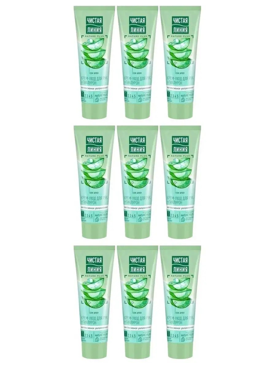 Крем-уход для рук Интенсивное увлажнение с соком алоэ, комплект 9 шт. по 75 мл.Каждая женщина мечтает выглядеть ухоженно и красиво. Для этого необходимо уделять внимание не только заботе о лице и волосах, но и уходу за руками, которые являются одним из основных критериев ухоженности. Задумывались ли Вы о том, сколько факторов окружающей среды воздействуют на кожу ваших рук? Ветер, жара, мороз и многое другое ежедневно наносит вред Вашей коже, делая ее грубой и сухой. Именно поэтому домашний уход за руками очень важен.Подарите Вашим рукам особый уход с кремом Чистая Линия Интенсивное увлажнение. До 97% компонентов натурального происхождения обеспечивают бережный уход за кожей. Входящий в состав крем-ухода, экстракт сока алоэ интенсивно увлажняет и сохраняет влагу. Комплекс фитомасел глубоко питает и насыщает витаминами кожу рук, делая ее мягкой и гладкой. Легкая текстура крема подходит для всех типов кожи. Крем-уход эффективно и надолго устраняет сухость кожи и обеспечивает ей идеальное увлажнение 24 часа. В результате кожа увлажнена, обогащена витаминами и защищена от сухости на долгое время.