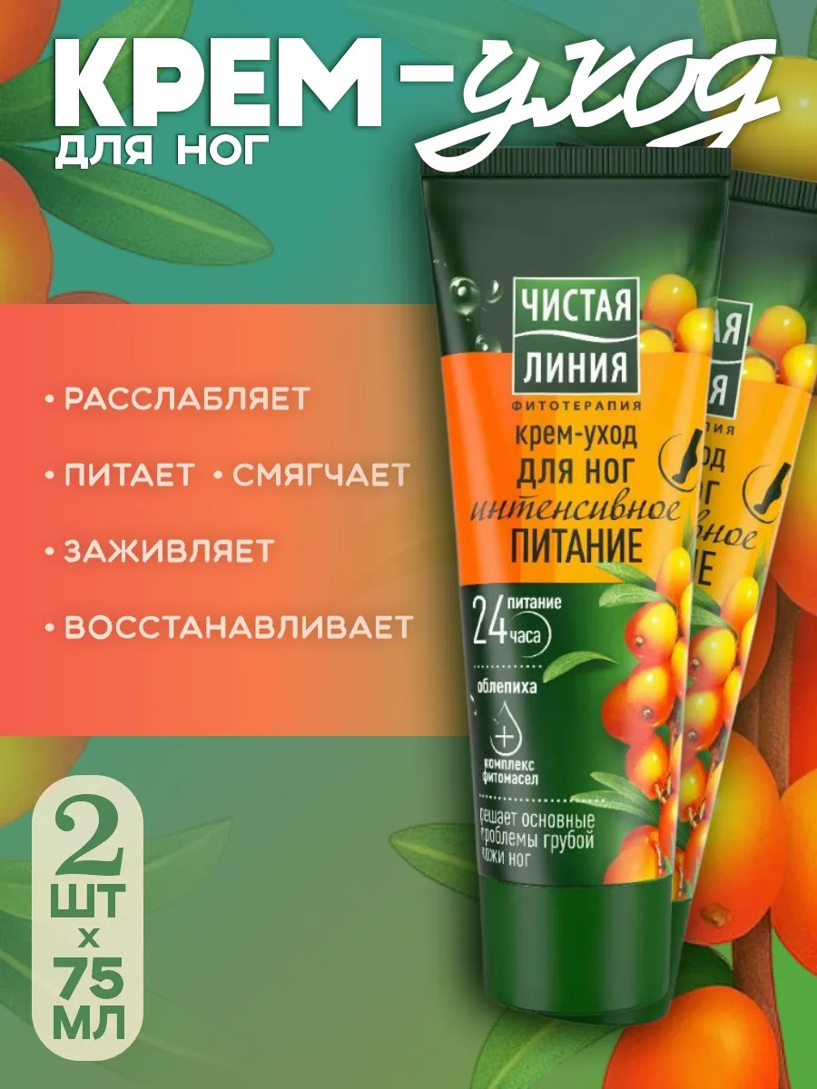 Чистая линия Крем-уход для ног облепиха 2 шт