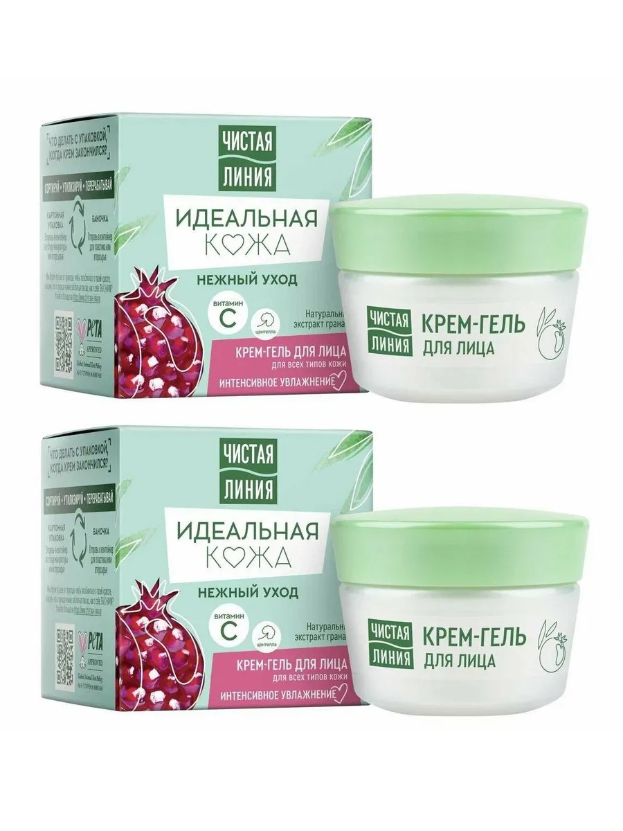 Чистая линия, крем-гель для лица, Идеальная кожа, 45 мл, 2 шт. Уникальная мультиактивная формула крем-геля содержит экстракт граната, витамин С и центеллу. Экстракт граната витаминизирует кожу, улучшает микроциркуляцию, стимулирует синтез коллагена, а также защищает от воздействия окружающей среды. Витамин С придает коже сияние, наполняет ее энергией. Центелла увлажняет, успокаивает кожу, поддерживая ее естественную упругость и тонус. Крем мгновенно впитывается и обладает UV защитой, являясь отличной основой под макияж.