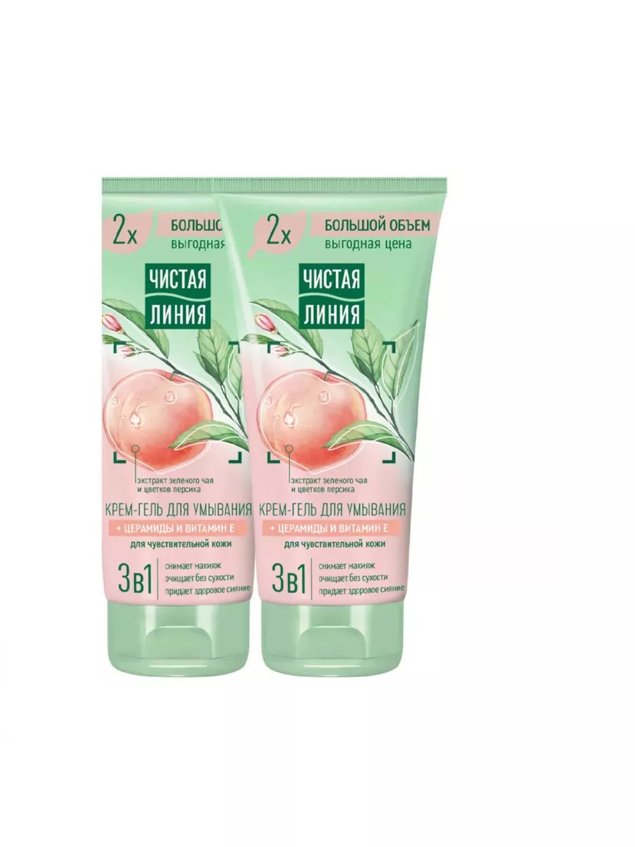 Чистая линия Крем-гель для умывания с зеленым чаем и персиком, 2 шт