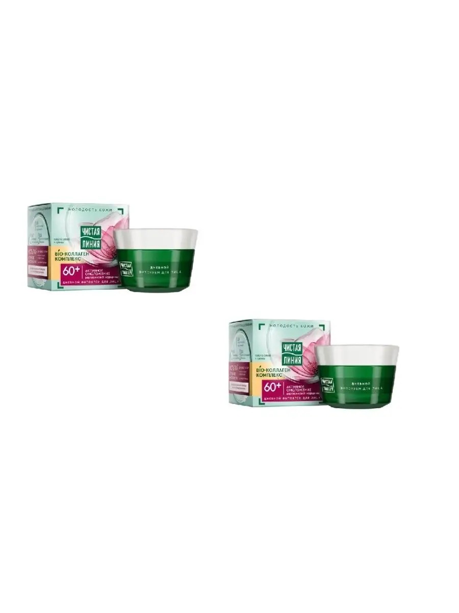КК ЧИСТАЯ ЛИНИЯ от 60 лет Крем дневной Таволга-Калина банка 45мл. Комплект из 2 штук.Кремы Чистая Линия обогащены комплексом "Фитоколлаген" из ростков и семян пшеницы. Уже с первого применения проникая в кожу, комплекс Фитоколлаген наполняет и разглаживает ее. Уже через 16 дней восстанавливает контуры лица Дневной фито-крем с таволга и калина из фито-линии от 60 лет эффективно сокращает морщины, освежает цвет лица, насыщает кожу энергией и здоровьем. Активные натуральные компоненты, входящие в состав комплекса Фитоколлаген, разглаживают кожу и делают ее более упругой. Результат: - Мгновенно разглаживает и питает кожу - Уже через 16 дней глубина морщин визуально уменьшается - Заметный эффект лифтинга - Более очерченные контуры лица - Кожа выглядит заметно моложе.