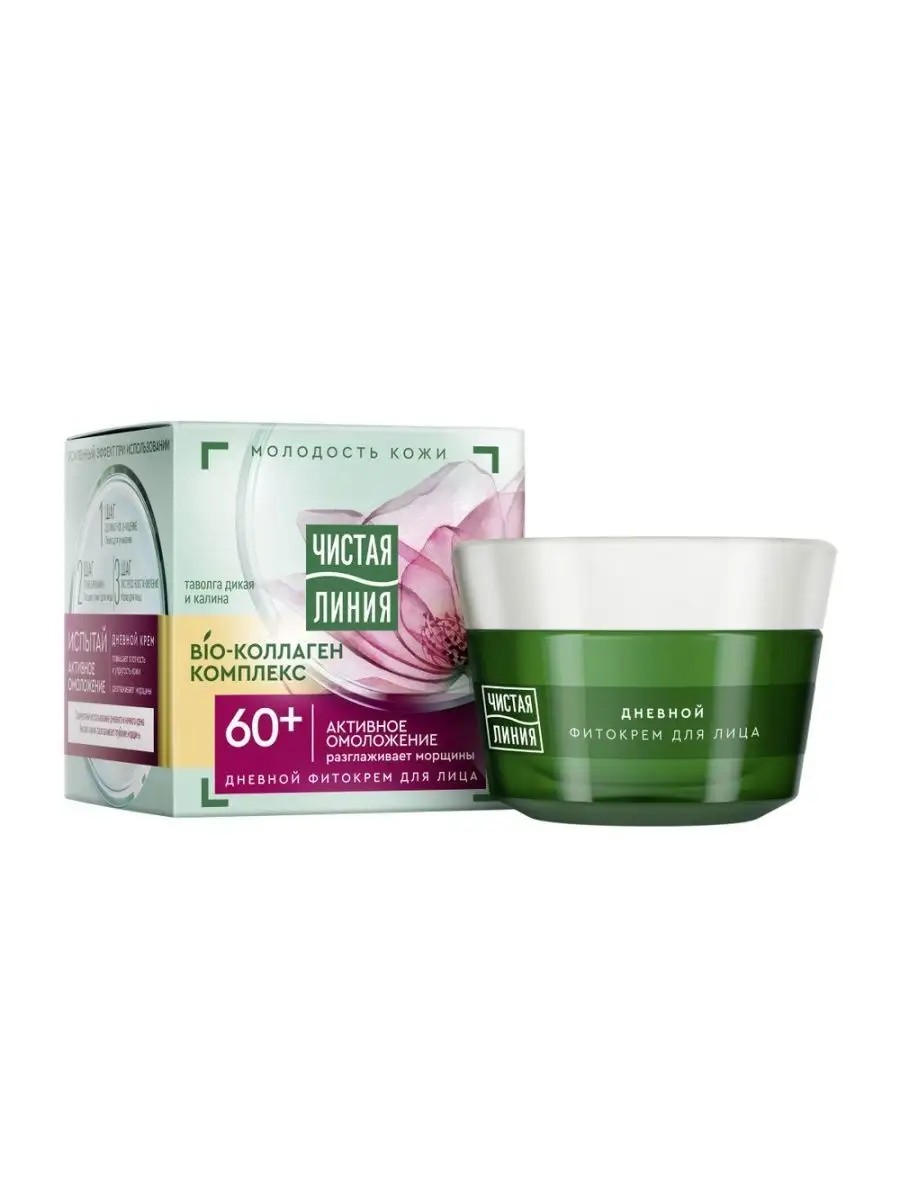 Кремы Чистая Линия обогащены комплексом "Фитоколлаген" из ростков и семян пшеницы. Уже с первого применения проникая в кожу, комплекс [Фитоколлаген] наполняет и разглаживает ее. Уже через 16 дней восстанавливает контуры лица Дневной фито-крем с таволга и калина из фито-линии от 60 лет эффективно сокращает морщины, освежает цвет лица, насыщает кожу энергией и здоровьем. Активные натуральные компоненты, входящие в состав комплекса [Фитоколлаген], разглаживают кожу и делают ее более упругой. Результат: - Мгновенно разглаживает и питает кожу - Уже через 16 дней глубина морщин визуально уменьшается - Заметный эффект лифтинга - Более очерченные контуры лица - Кожа выглядит заметно моложе