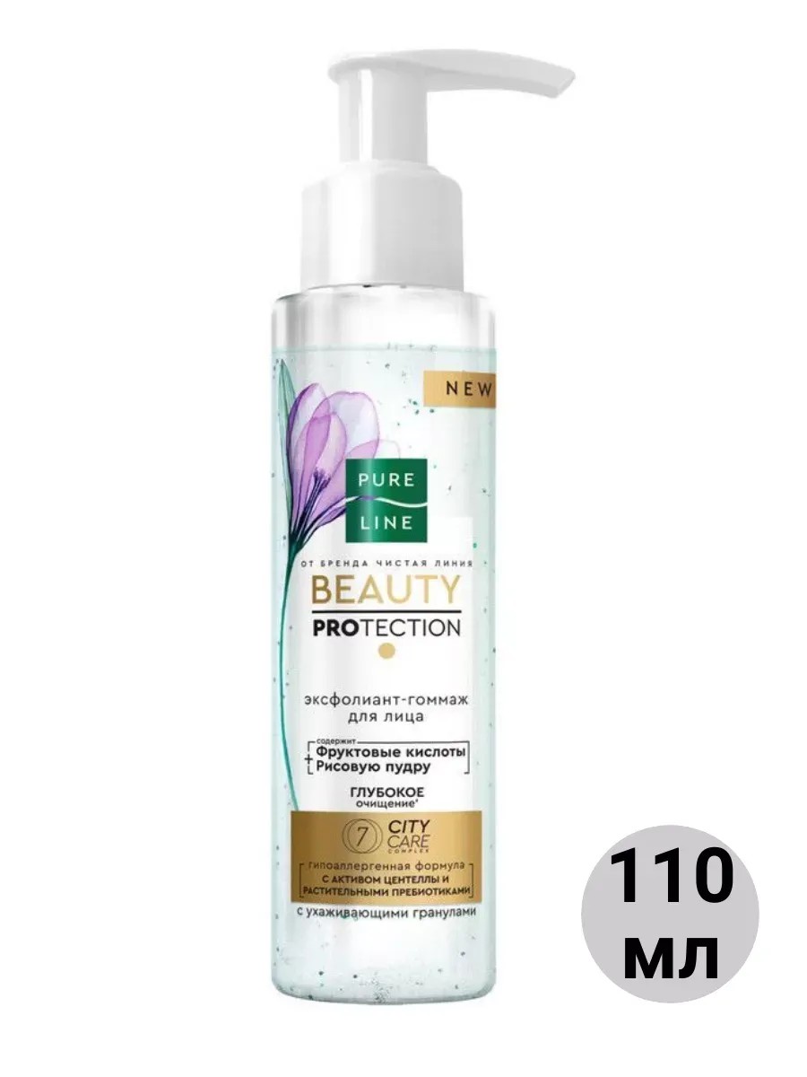 Новый уровень комфорта вашей кожи с эксфолиант - гоммажем для лица Pure Line Чистая Линия. Фруктовые кислоты в эффективной концентрации бережно обновляют, придают коже сияние и мягкость. Рисовая пудра и ухаживающие гранулы деликатно очищают и выравнивают рельеф кожи. Комплекс 7 CITY CARE 100% натурального происхождения с активом центеллы азиатской и растительными пребиотиками защищает от воздействия загрязнений окружающей среды и обеспечивает 7 преображающих эффектов - сияющая кожа, меньше признаков раздражения, баланс микробиома, сохранение упругости, комфорт, дополнительное увлажнение и восстановление. Двойной эффект: полирующие частицы и фруктовые кислоты для глубокого дополнительного очищения. Пилинг одобрен дерматологами, его формула гипоаллергенна.