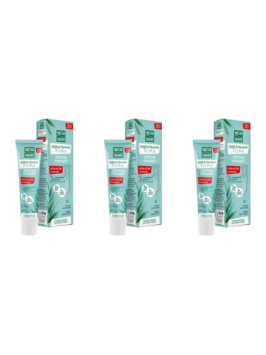 Чистая линия Крем для лица Против прыщей 40 мл, 3 штуки