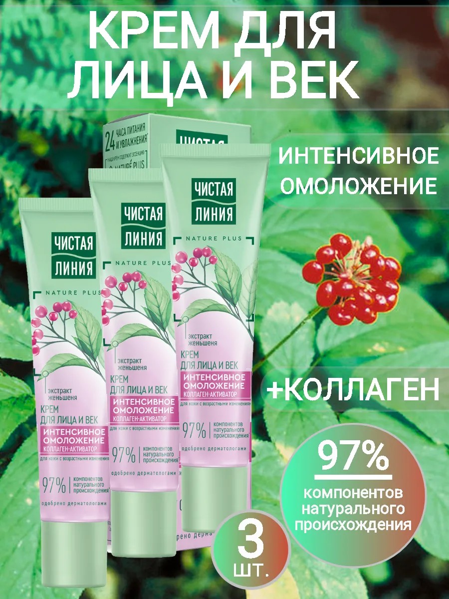 Чистая линия Крем для лица и век (Коллаген) 3шт