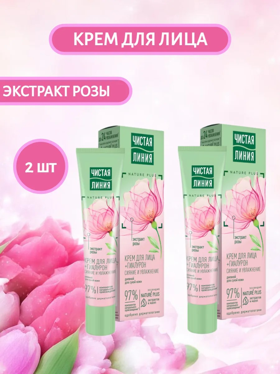 Чистая линия Крем для лица дневной экстракт розы 40 мл 2 шт