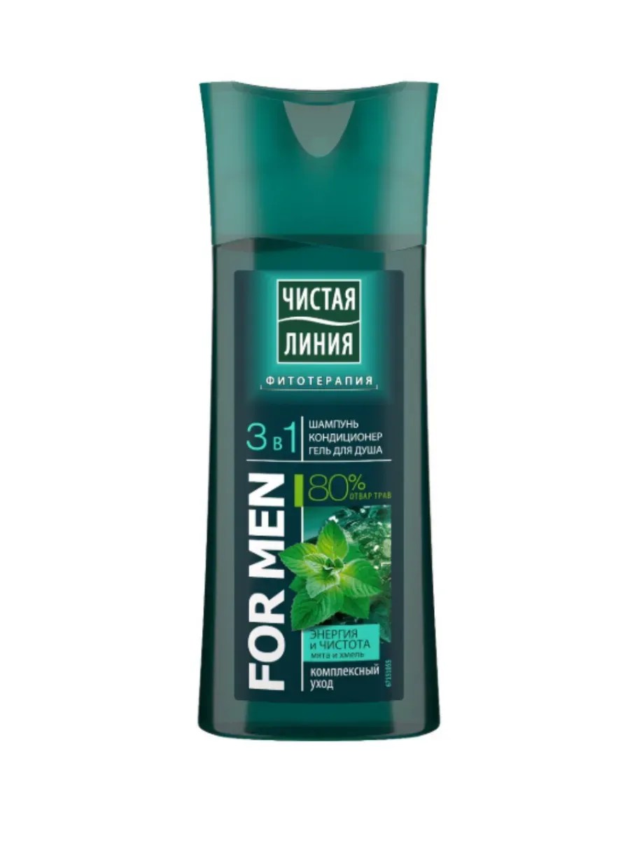 Шампунь для волос 3 в 1 250 мл. Сила природы дарит свой заряд мужчинам! Уникальный состав компонентов, основанный на отваре трав обеспечивает комплексный уход. Чистая Линия FOR MEN Энергия и чистота разработала исключительно свежий подход к уходу за телом и волосами мужчин!