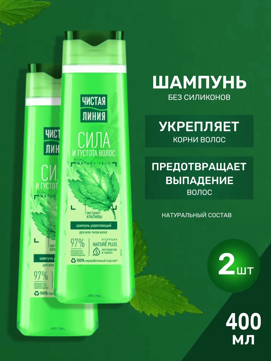 Чистая линия Шампунь для волос женский Укрепляющий, 400 мл, 2 шт