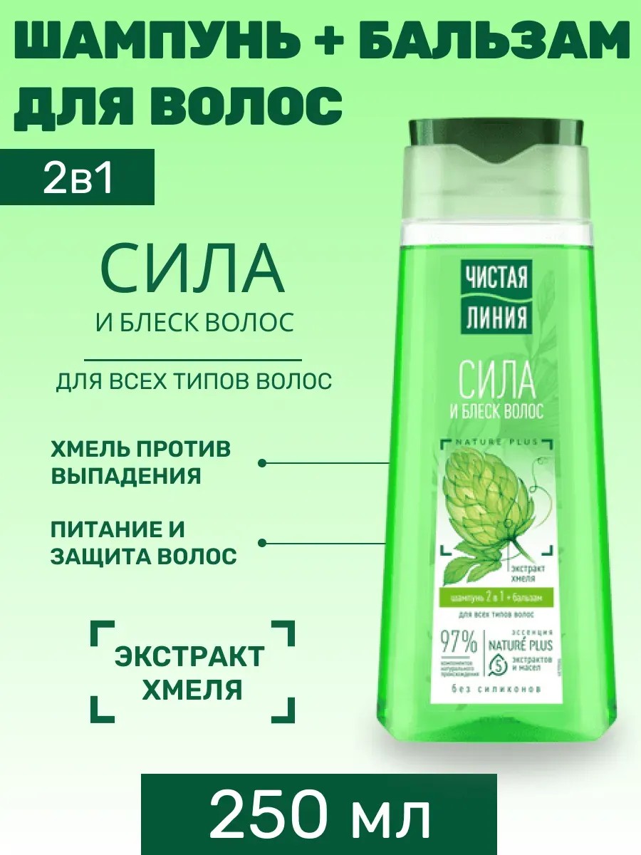 Чистая линия Шампунь для волос женский 2в1 сила и блеск волос, 250 мл