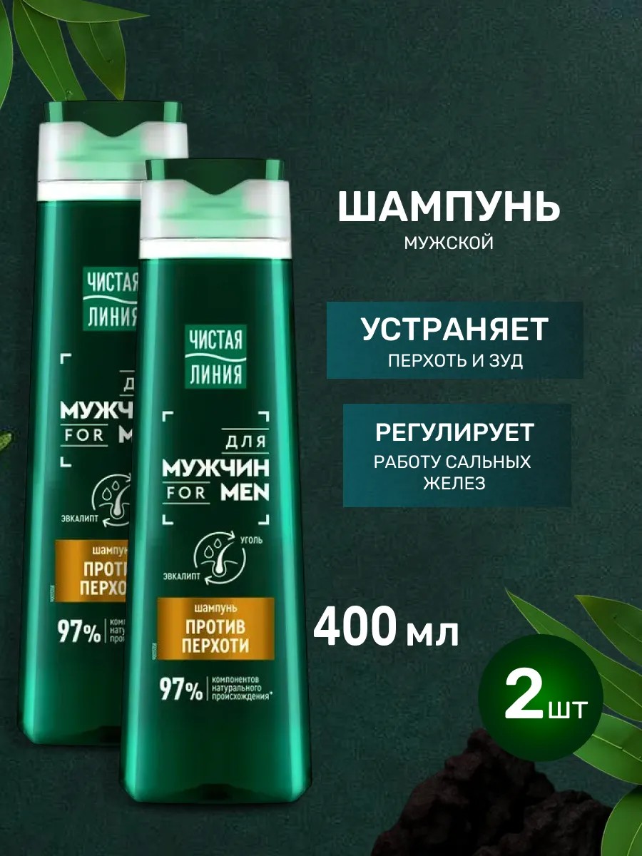 Чистая линия Шампунь для волос мужской против перхоти 400 мл, 2 шт
