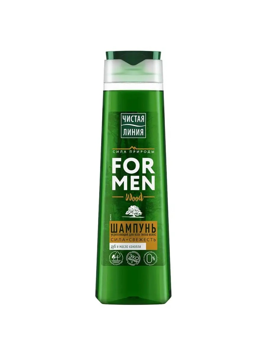Чистая линия Шампунь для волос Укрепляющий для мужчин 400мл. Сила природы дарит свой заряд мужчинам! Уникальный состав компонентов, основанный на отваре трав обеспечивает комплексный уход. Чистая Линия For men разработала исключительно свежий подход к уходу за телом и волосами мужчин! Энергия и сила для твоих волос активизируются благодаря силе дуба. В косметологии используются ценные отвары из тонкой и гладкой коры молодых побегов, ветвей дуба и листьев. Регулярное использование шампуня для волос с экстрактом коры дуба от Чистой Линии снижает жирность кожи головы, уменьшает ломкость волос, тормозит процессы выпадения волос и придает им здоровый ухоженный вид. В конопляном масло содержится много эфиров, дубильных и смолистых веществ, витамина С. Травы в составе продуктов ЧИСТАЯ ЛИНИЯ имеют паспорт качества и проходят многоступенчатый контроль экологической чистоты. ЧИСТАЯ ЛИНИЯ гарантирует эффективность: следит за соблюдением уровня активных веществ, использует только самые эффективные части растений, занимается клиническими исследованиями отвара трав. Бренд Чистая Линия бережно относится к окружающей среде: мы заряжаем продукты природной пользой для вас, при этом предпринимая меры по сохранению нашей общей зеленой планеты для будущих поколений. Мы закупаем 100% возобновляемую электроэнергию, полученную с использованием энергии ветра, для производства продукции на наших фабриках в Екатеринбурге и Санкт-Петербурге, а также направляем 100% производственных отходов на утилизацию, отличную от передачи на полигон: на переработку или дальнейшее использование в других отраслях. Бренд Чистая Линия заботится о нашей природе.