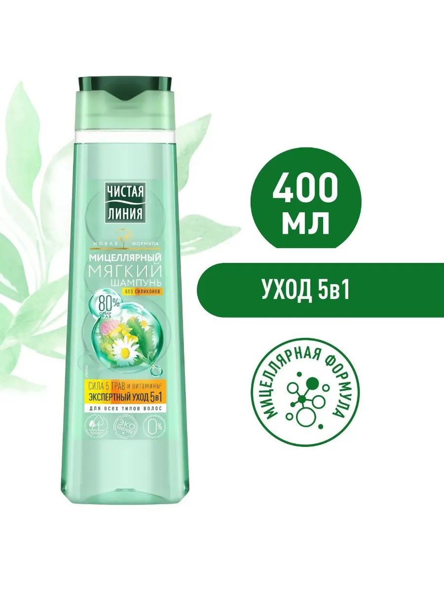 Шампуни и бальзамы чистая линия со знаком экоконтроль гарантируют экологическую чистоту и пользу входящих трав. Травы в составе продуктов чистая линия имеют паспорт качества и проходят многоступенчатый контроль экологической чистоты. Чистая линия гарантирует эффективность: следит за соблюдением уровня активных веществ, использует только самые эффективные части растений, занимается клиническими исследованиями отвара трав.. Эксперты института чистая линия создали коллекцию инновационных средств по уходу за волосами на мицеллярной основе. Они не раздражают чувствительную кожу головы, сохраняют ее гидролипидный баланс и не пересушивают волосы, даже при ежедневном мытье. Мицеллярный шампунь создан для мягкого очищения волос без сухости, 5 действий в 1 шампуне. Мицеллярная основа бережно очищает и увлажняет волосы, не повреждая даже истонченные кончики длинных волос, полезная формула 80. Отвара трав наполняет волосы силой, фитовитамины придают блеск и мягкость подходит для всех типов волос.. В 3 раза эффективнее вместе с бальзамом-ополаскивателем.