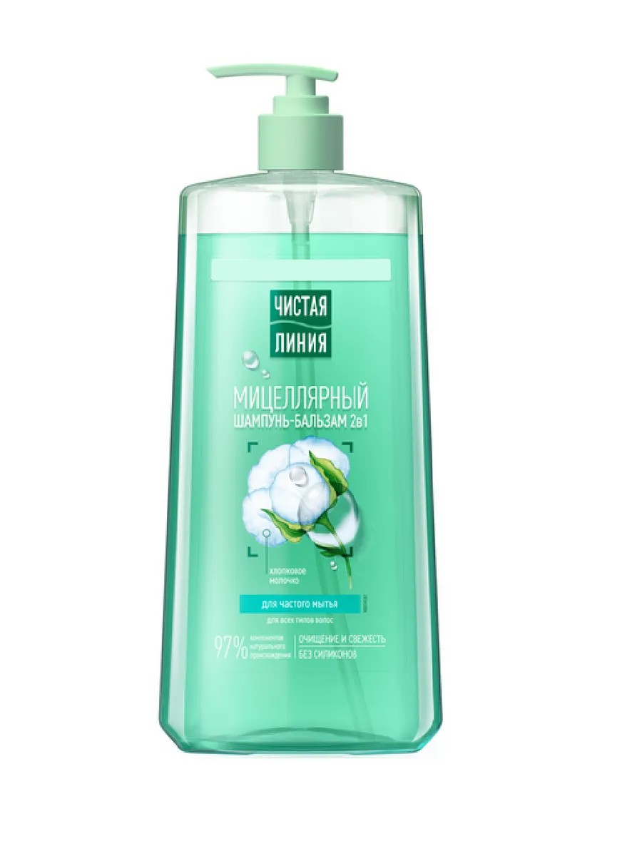 Чистая линия Шампунь-бальзам мицеллярный с хлопковым молочком, 1000 мл
