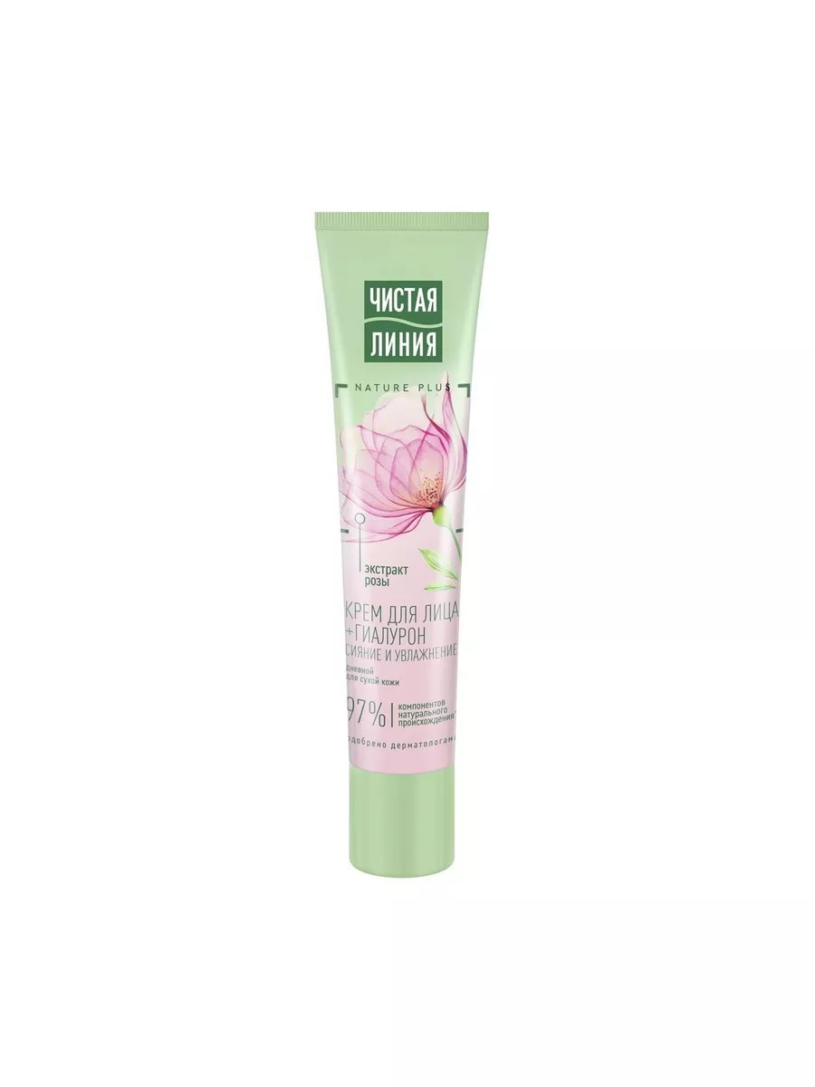 Meet the updated cream from Chistaya Liniya with an enhanced formula1 and a new design! Dry skin requires special care. Chistaya Liniya experts have developed a complete daytime moisturizing cream for dry skin, containing 97% natural ingredients, including an essence of five NATURE PLUS extracts and oils (verbena extract, peony extract, almond, flax, and olive oils), rose extract, and hyaluronic acid. Active natural ingredients nourish and restore the lipid barrier, preventing the appearance of fine wrinkles. Facial skin receives deep2 hydration that lasts up to 24 hours3! - Verbena extract restores moisture balance and tones. - Peony extract and flaxseed oil soothe and soften. - Almond oil contains fatty acids, vitamins E and F, nourishes and smoothes the skin's surface. Fermented olive oil is a powerful natural antioxidant that nourishes and protects against premature aging. Hyaluronic acid attracts water molecules and creates a thin, invisible film on the surface of the face, thereby saturating it with moisture. Rose extract soothes, refreshes, and imparts smoothness and a healthy glow. The result: smooth, hydrated, and radiant skin, ready for makeup application. For best results, combine with the Pure Line nourishing night cream for dry skin. Dermatologist-approved. This product is not tested on animals.