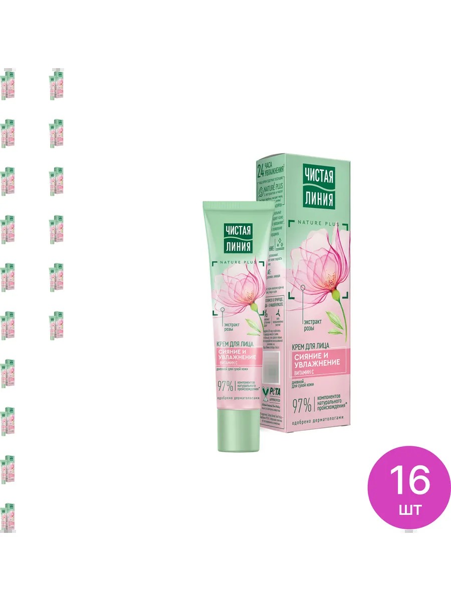 Чистая Линия Сияние и Увлажнение Дневной крем для лица увлажняющий для сухой кожи с гиалуроном и экстрактом розы 40мл / косметика против морщин.
