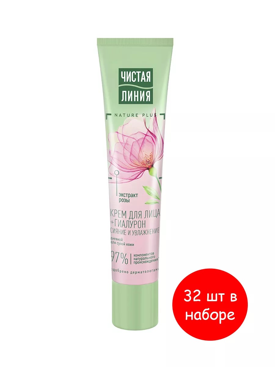 Dry skin requires special care. The experts at Chistaya Liniya have developed a complete daytime care for dry skin – a moisturizer containing 97% natural ingredients, including an essence of five NATURE PLUS extracts and oils (verbena extract, peony extract, almond, flax, and olive oils), rose extract, and hyaluronic acid. Active natural ingredients nourish and restore the lipid barrier, preventing the appearance of fine lines. Facial skin receives deep hydration that lasts up to 24 hours!