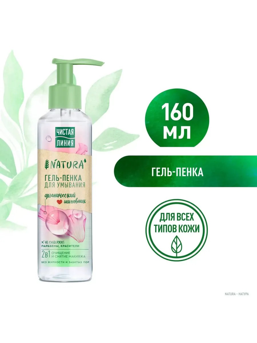Красота...Естественность...Натуральность...? Да это всё здесь! И не только!) Кожа мягкая и нежная. Гель-пенка для умывания 2в1 Чистая Линия Natura с organic шиповник деликатно очищает кожу от загрязнений и избытка себума без сухости. Прекрасно удаляет макияж.Не содержит: парабены, спиртГлавный действующий ингредиент - organic шиповник...(серьезно? да, именно шиповник!): богат витаминами и антиоксидантами, обладает тонизирующими и увлажняющими свойствами, делает кожу сияющей и повышает её упругость.Твоя кожа скажет тебе спасибо!Для всех типов кожи. Да! Даже для чувствительной.Клинически протестировано. Природа совершенна. Она вдохновляет красотой и чистотой. Да-да-да!... Ты тоже в этом спсике. ТЫ - ЕЕ ЧАСТЬ. КАК И МЫ!ПОЭТОМУ: наши продукты заботятся не только о красоте, сиянии и увлажнении твоей кожи, но и о красоте окружающего мира. Красивая природа, красивая ты!