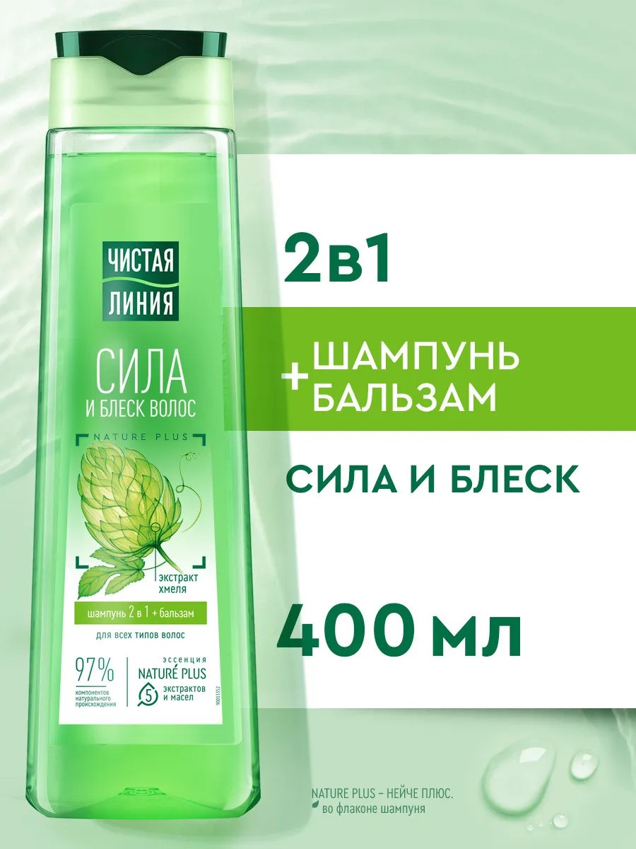 ЧИСТАЯ ЛИНИЯ Шампунь и бальзам 2в1 Сила и блеск 400 мл