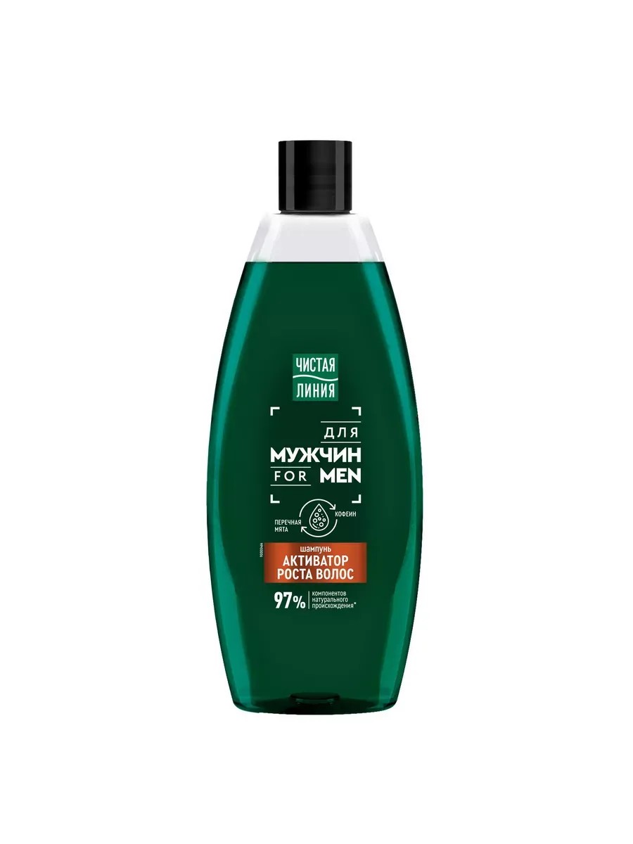 Мужские волосы и кожа головы нуждаются в особом уходе. Чистая Линия представляет новую серию продуктов для мужчин. Шампунь содержит 97% компонентов натурального происхождения, бережно очищает волосы и кожу головы и способствует активации роста волос. Перечная мята и кофеин в составе оказывают комплексное воздействие: