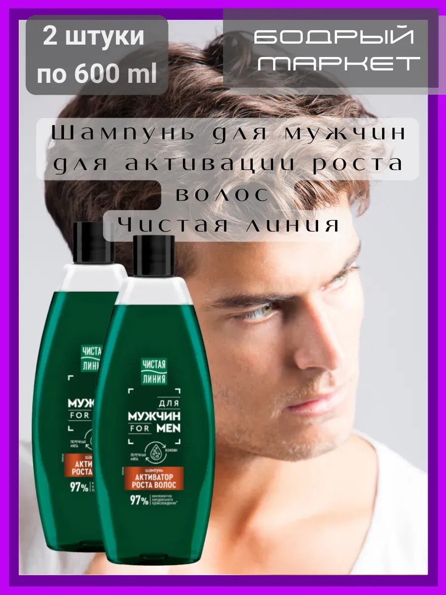 Чистая линия Шампунь для мужчин для активации роста волос 2 шт. по 600 мл.
