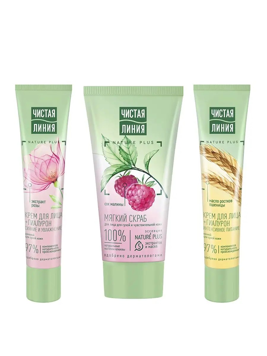 Встречайте обновленный скраб от Чистой Линии с усиленной формулой* и новым дизайном! Специально для сухой и чувствительной кожи эксперты бренда Чистая Линия разработали мягкий скраб, который бережно очищает кожу, полноценно ухаживая за ней в процессе использования. 100% натуральные косточки клюквы, измельченные до нужного размера, бережно удаляют ороговевшие клетки, полируя и выравнивая поверхность кожи, но при этом не травмируя. Сок малины, насыщенный витаминами, успокаивает кожу, помогая предотвращать покраснение и раздражение, выравнивает тон. Результат: сияющая и ровная кожа, сухость и шелушение устранены. Эссенция из пяти взаимодополняющих экстрактов и масел NATURE PLUS (экстракт вербены, экстракт пиона, масла миндаля, льна, оливы) восстанавливает и тонизирует кожу во время очищения. Встречайте обновленный крем от Чистой Линии с усиленной формулой и новым дизайном! Сухая кожа нуждается в особом уходе. Эксперты бренда Чистая Линия разработали полноценный дневной уход для сухой кожи – увлажняющий крем, в составе которого 97% компонентов натурального происхождения*, и среди них эссенция из пяти экстрактов и масел NATURE PLUS (экстракт вербены, экстракт пиона, масла миндаля, льна, оливы), экстракт розы и гиалурон. Активные натуральные компоненты питают, восстанавливают липидный барьер, предотвращая появление мелких морщинок. Встречайте обновленный крем от Чистой Линии с усиленной формулой1 и новым дизайном! Для восстановления ночью необходим специальный уход, отвечающий потребностям кожи конкретного типа. Питательный ночной крем разработан экспертами бренда Чистая Линия с учетом потребностей сухой кожи. Активные ингредиенты крема: эссенция из пяти экстрактов и масел NATURE PLUS (экстракт вербены, экстракт пиона, масла миндаля, льна, оливы), масло облепихи и гиалурон. Натуральные компоненты питают, восстанавливают липидный барьер, предотвращая появление мелких морщинок. Кожа лица получает глубокое1 увлажнение, которое длится до 24 часов.