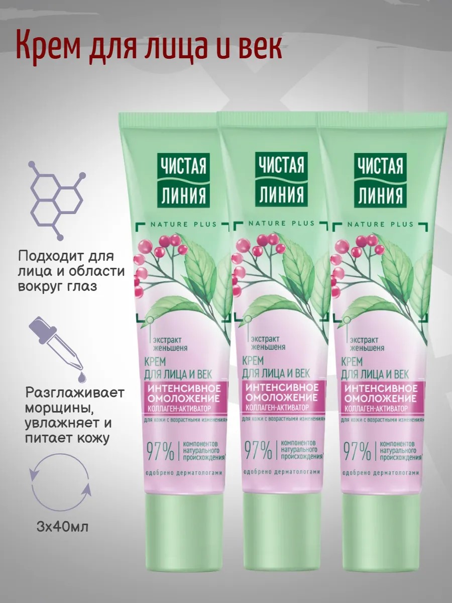 Подарите коже свежесть, упругость и заботу с кремом-омоложением «Чистая Линия» для лица и век. Формула на 97% состоит из компонентов натурального происхождения* и направлена на активную борьбу с возрастными изменениями кожи: морщинами, сухостью и снижением тонуса.