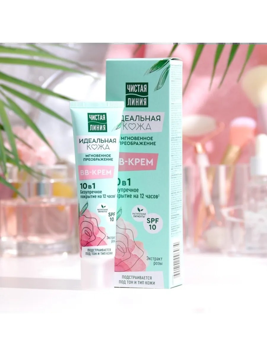 BB-крем "Чистая линия. Идеальная кожа" объёмом 40 мл - это идеальное решение для создания ровного и сияющего тона лица. Уникальная формула 10 в 1 сочетает в себе светоотражающие частицы и растительные экстракты, которые мгновенно преображают кожу. Лёгкая текстура не создаёт эффекта маски, благодаря чему покрытие выглядит естественно. Крем обеспечивает увлажнение и питание на 24 часа, скрывает несовершенства, матирует кожу и придаёт ей здоровый вид. Он значительно уменьшает поры и сохраняет безупречное покрытие до 12 часов. Средство защищает от UV-лучей с SPF 10 и адаптируется под любой тип и тон кожи, предотвращая негативное воздействие окружающей среды. Рекомендуется наносить крем на сухую кожу лица после умывания, равномерно распределяя его без необходимости предварительного использования дневного крема. BB-крем подходит для всех типов кожи и позволяет добиться свежего и отдохнувшего образа без лишних усилий.