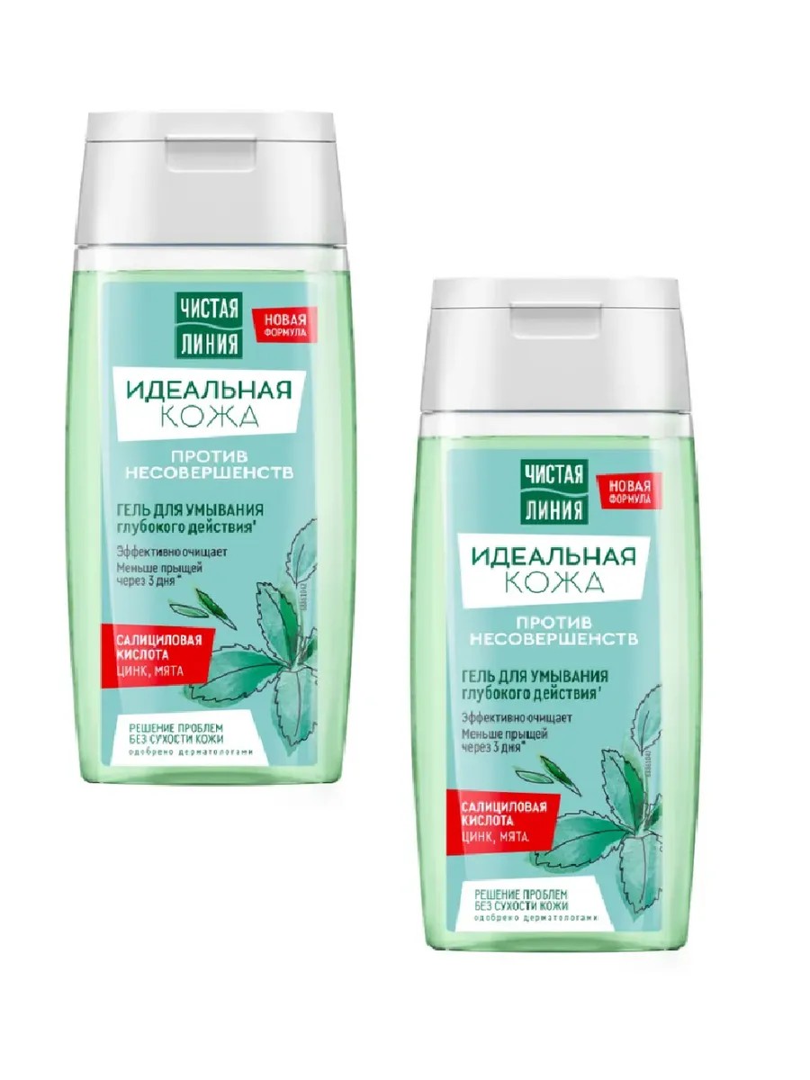 Чистая линия, Гель для умывания Идеальная кожа глубокого действия против несовершенств, 100 мл, 2 шт.