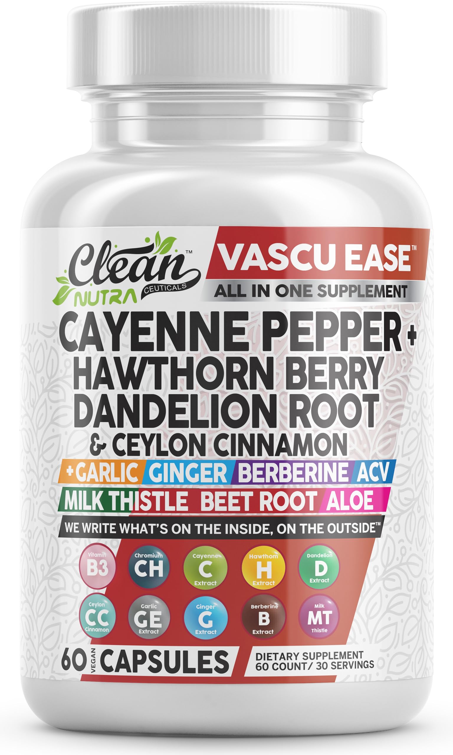 Clean Nutra Cayenne Pepper Capsules Supplement with Hawthorn Berry Dandelion Root Ceylon Cinnamon Garlic Ginger Berberine Apple Cider Vinegar Milk Thistle Beet Root Aloe Vera Pills & More