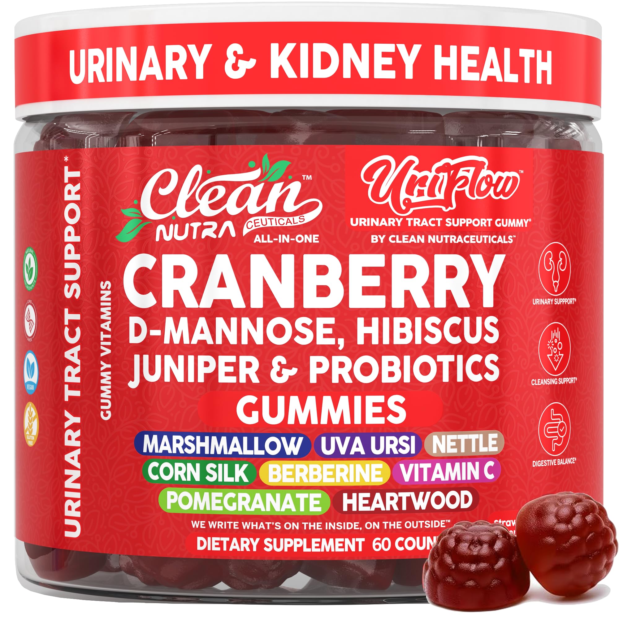 Clean Nutra UriFlow Urinary Tract Gummies are meticulously crafted to deliver comprehensive support for urinary tract health and overall wellness. This advanced formula features a powerful blend of 12 key ingredients, including cranberry, d-mannose, pomegranate, uva ursi, nettle, berberine, probiotics, marshmallow, vitamin C, corn silk, hibiscus, and juniper. Designed as a delicious strawberry watermelon gummy, UriFlow offers an appealing alternative to traditional pills and sugary drinks, making daily supplementation effortless and enjoyable. This potent combination works synergistically to promote urinary comfort and maintain a healthy internal balance, supporting both men and women. Our UriFlow gummies are more than just a convenient gummy they are a targeted solution for those seeking to incorporate natural ingredients into their routine. Each serving provides significant dosages of essential components like d-mannose 2000mg capsules, vitamin c 1000mg, marshmallow root organic, pomegranate extract powder, and a natural cranberry supplement. We've included gut health support with women's probiotics and men's probiotics, ensuring a holistic approach to wellness. With ingredients such as berberine 1500mg, heartwood extract, hibiscus extract, and juniper extract, UriFlow aims to replace multiple bottles in your cabinet, providing an all-in-one approach to your daily regimen. Experience the benefits of organic d-mannose, best hibiscus, and pure corn silk, all in an easy-to-use form. Our commitment to quality means these gummies are manufactured in state-of-the-art facilities, ensuring potency, efficacy, and purity in every batch. Trust Clean Nutra UriFlow for proactive urinary balance and a healthier you.TRUSTED QUALITY PURITY: Clean Nutra is dedicated to delivering high-quality supplements. Our UriFlow gummies are manufactured in state-of-the-art facilities, adhering to rigorous standards for potency, efficacy, and purity. Each batch is lab-tested to ensure you receive a product that meets our commitment to excellence. Rest assured with organic probiotics, vitamin c tablets, organic juniper, and pure corn silk for your daily wellness. EASY DELICIOUS ALTERNATIVE: Say goodbye to hard-to-swallow pills and sugary drinks. UriFlow gummies offer a delicious strawberry watermelon flavor, making your daily wellness routine. This convenient form ensures consistent intake of essential ingredients like vitamin c supplement, cranberry capsules, juniper supplement, and corn silk capsules. Embrace a new way to support your urinary comfort with organic cranberry, heartwood supplement, and pomegranate supplement. POTENT INGREDIENT BLEND: Each gummy is packed with concentrated extracts like hibiscus extract, juniper extract, and cranberry extract, alongside vitamin c 500mg, probiotics capsules, and marshmallow supplement. This carefully chosen combination works synergistically to promote a balanced internal environment. Unlike weak alternatives, our gummies deliver significant doses of nettle leaf capsules, pomegranate extract powder, and berberine capsules for maximum efficacy and daily support. URINARY TRACT KIDNEY SUPPORT: Our advanced formula provides targeted support for urinary tract comfort and overall kidney health. With ingredients like d-mannose supplement, cranberry extract, and uva ursi supplement known for their beneficial properties, UriFlow helps maintain proper urinary function. This blend includes berberine 1500mg, hibiscus powder, heartwood capsules, and corn silk extract, offering comprehensive everyday wellness. Enjoy natural d-mannose pure hibiscus. ALL-IN-ONE URIFLOW GUMMIES: Clean Nutra UriFlow is a powerful urinary tract support supplement. Featuring a blend of cranberry D-mannose, pomegranate, uva ursi, nettle, berberine, probiotics, marshmallow, vitamin C, corn silk, hibiscus, and juniper. Our gummies offer a delicious alternative to traditional pills with 12 potent ingredients for comprehensive health support. Experience natural cranberry, organic d-mannose, and best hibiscus benefits.