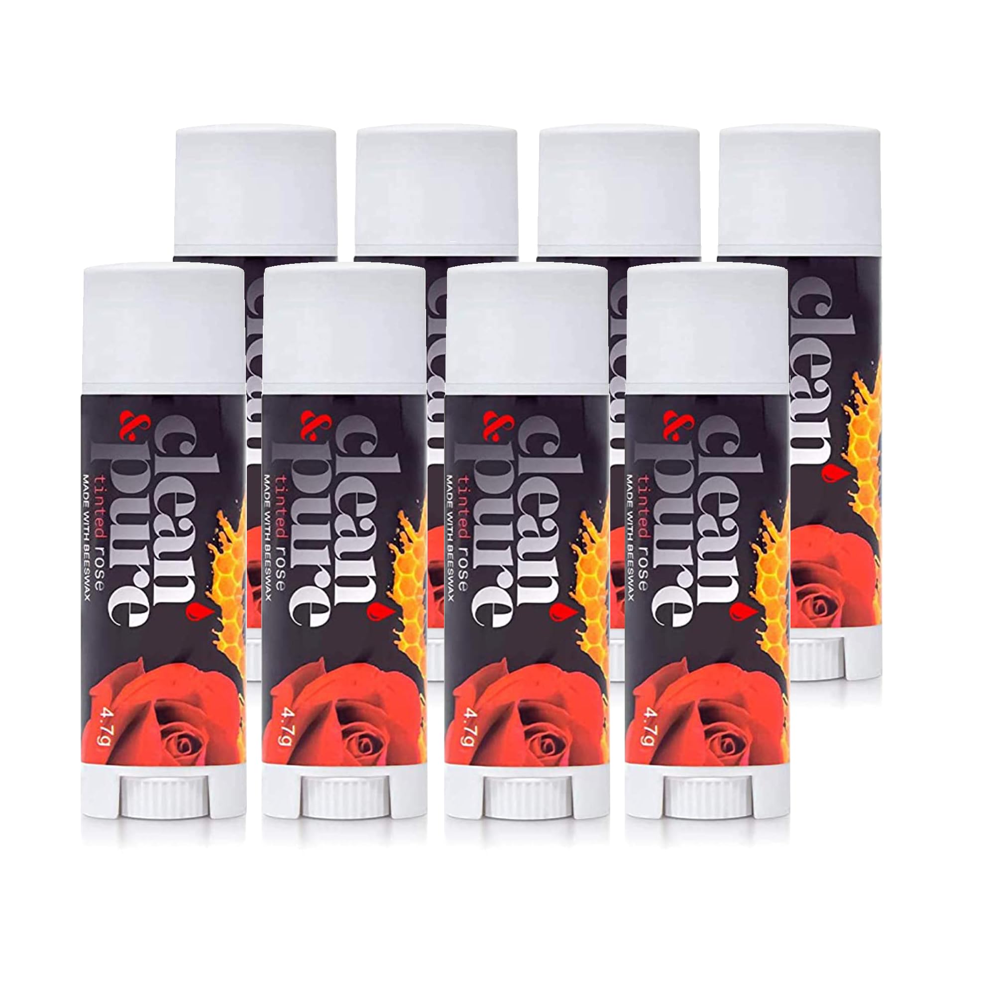 Clean & Pure Lip Balm 8-Pack (Tinted Rose) | Lip Care Set With 100% All Natural Beeswax | Vitamin E Oil | Flavored Lip Balm for Dry Chapped Lips | Made in Australia