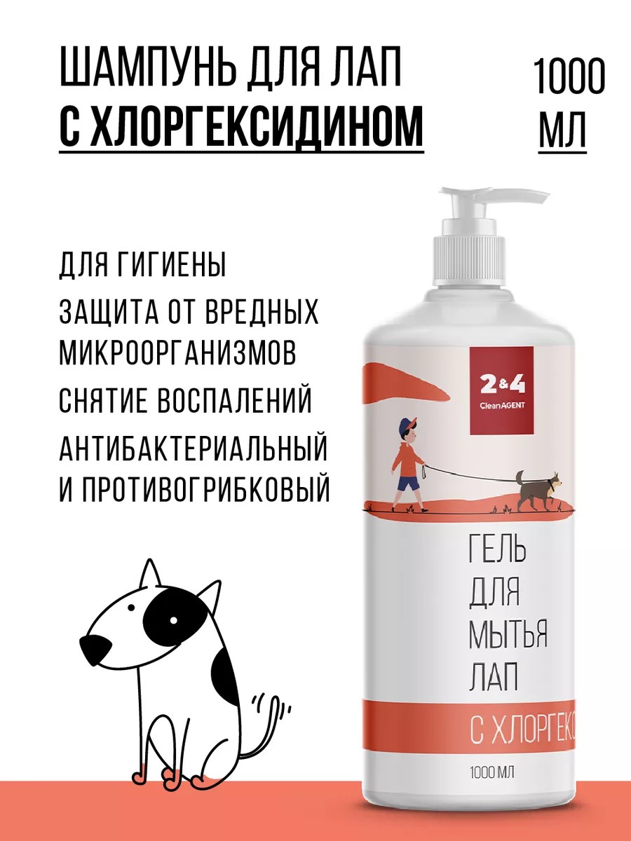 CleanAgent Шампунь для лап собак с хлоргексидином, 1000 мл