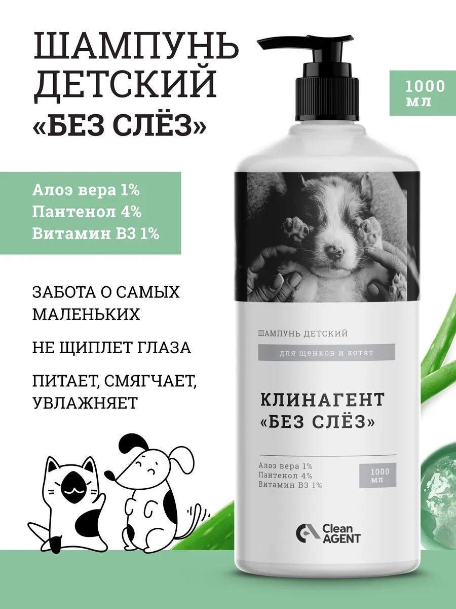 CleanAgent Шампунь для собак гипоаллергенный "Без слез", 1 литр