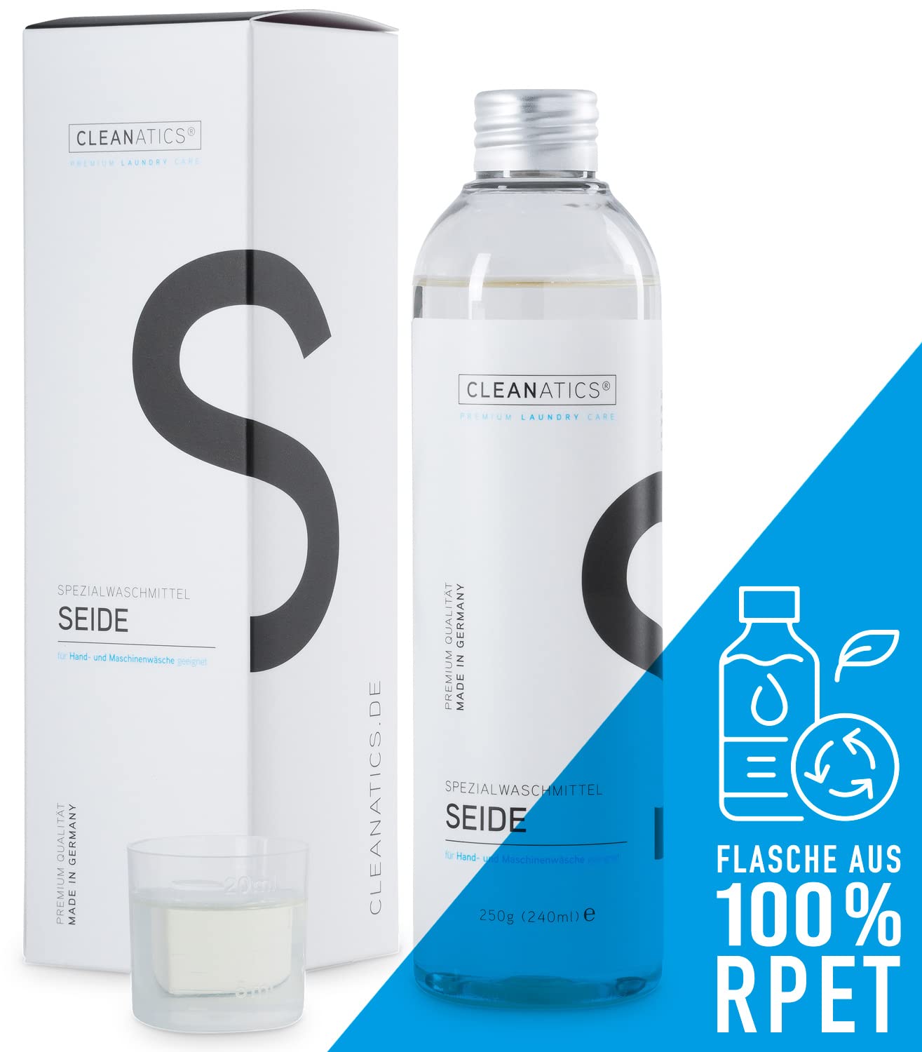 The silk washing concentrate was specially developed for the care of silk, silk mixing fabric and viscose and is suitable for both hand and machine wash. In addition to the fiber -friendly cleaning power, the special detergent receives the bright colors and ensures a pleasantly soft and smooth handle of the silk without making it look greasy or unsightly. Suitable for: Silk scarf Silk blouse Silk ceiling silk pillow Silk bed linen Silk nightgown Dosage recommendation: Suitable for 24 hand or 12 machine washes Hand wash with 5l water at max. 30 : 10ml Machine washing in the wool program: 20ml The Cleanatics special detergents are quality products made in Germany. By using biodegradable ingredients, gentle and at the same time effective surfactants as well as the absence of optical brightener chemical bleach, we can ensure a high efficiency of the products while protecting the skin and environment. More special detergents: 1. Microfiber (: B079ZWRK6M) 2. Wool Kashmir (: B079ZX3SVG) 3. Down (: B079ZW64KX) 4. Nature fur (: B079ZVStth) 5. Curtains (: B07GJSPBL9) 6. Cotton linen (: B07GJLTD92) 7. Jeans (: B07GJRP1BL) Further application and care instructions can be found in the product packaging. Warnings XI - lovely