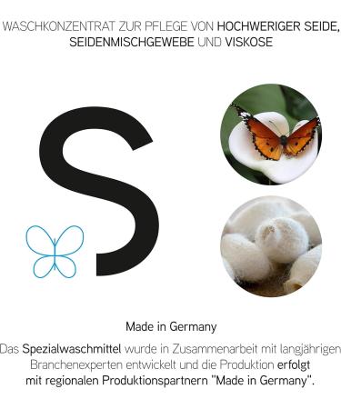 high product quality through the use of high -quality raw materials and regional production facilities (made in Germany).Easy application thanks to practical dosing aid (measuring cup included) - suitable for 24 hand or 12 machine washes.Protection of skin environment by using biodegradable ingredients, effective surfactants as well as the absence of optical brighteners and chemical bleach.The color -preserving effect ensures a bright shine and a pleasantly soft smooth handle of the silk.fiber -saving cleaning of pure silk and sensitive clothing made of silk mixing fabric viscose such as silk blouses, silk scarf and silk sleeping bag.