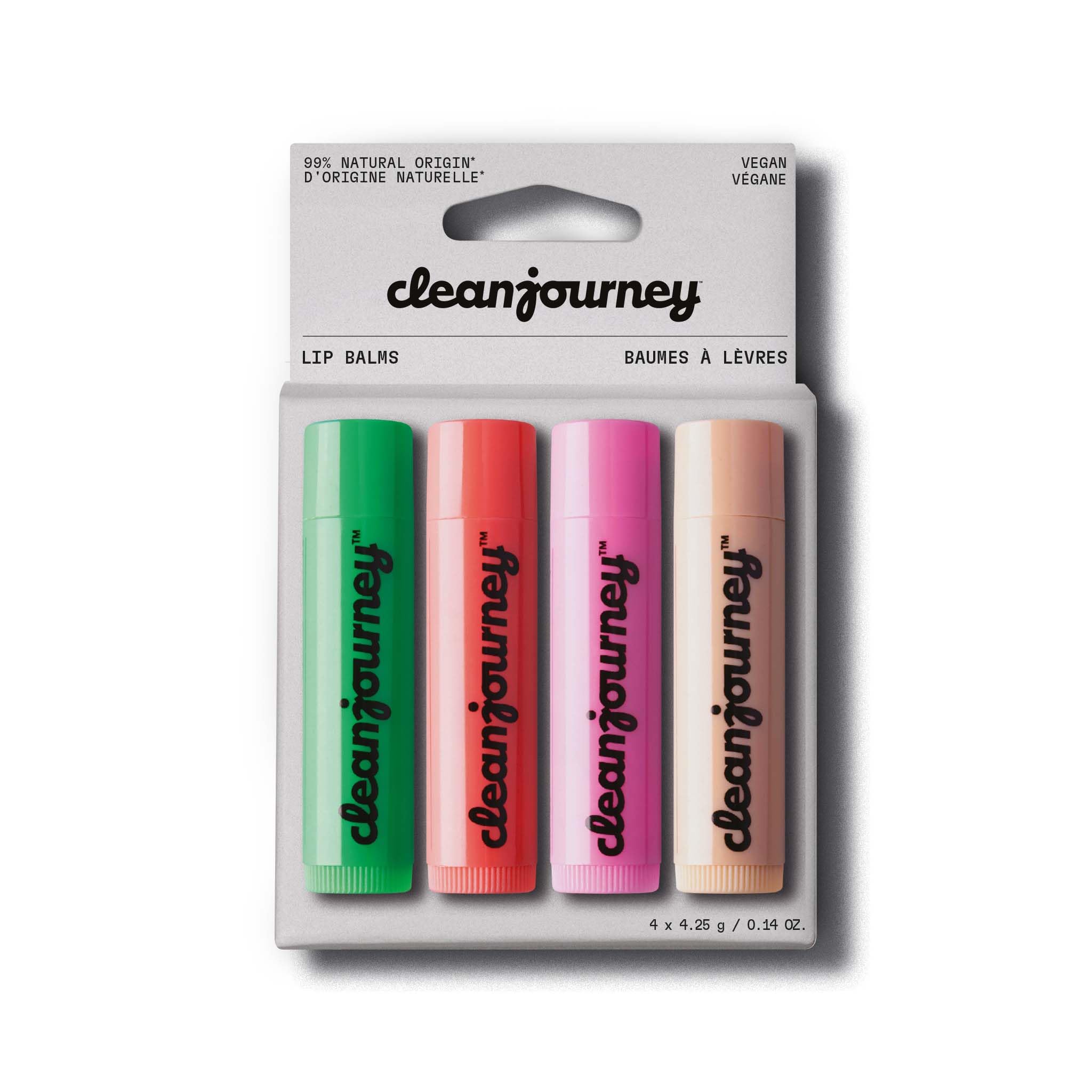 cleanjourney Lip Balm Set 99% Natural Origin Nourishes & Protects Castor Oil Coconut Oil & Shea Butter EWG Verified Vegan For Dry Lips Mint Raspberry Exotic & Coconut 0.14 Oz (Pack of 4)